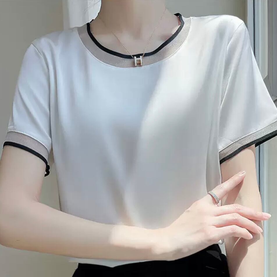 トップス ブラウス 白トップス 袖あり 半袖 Uネック ラウンドネック スリム タイト 細身 ストレート 透け感 シースルー きれいめ シンプル カジュアル 大人 上品 おしゃれ お洒落 かっこいい 大人女子 こなれ感 クール セクシー セクシー 無地 春 夏 秋 10代 20代 30代 40代 50代 60代 レディース オフィス ビジネス OL 通勤 デート お出かけ 休日 ホテル ガーデン レストラン 着回し 普段使い 韓国 韓国系 オルチャン ファッション コーデ スタイル モテ サイズ展開