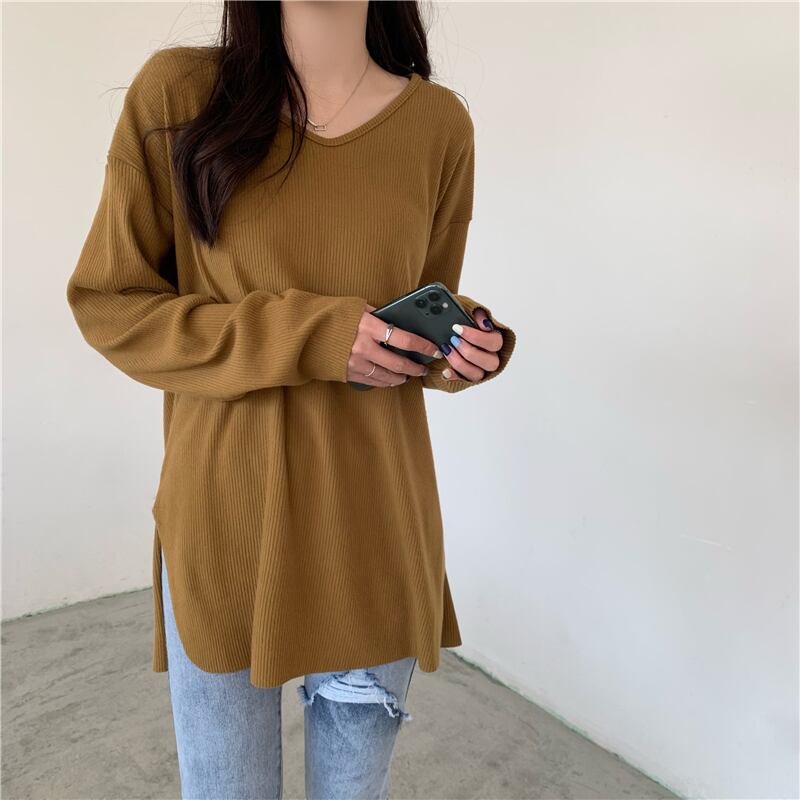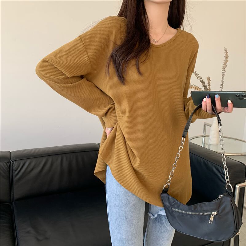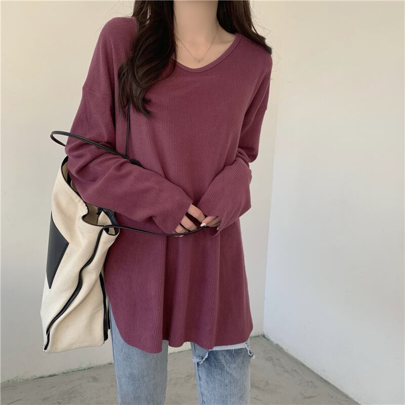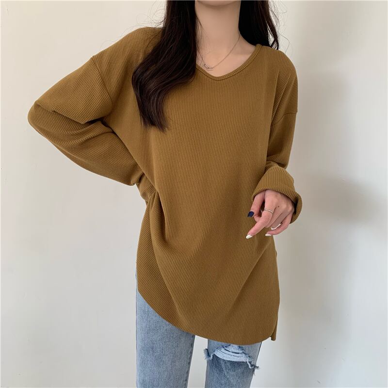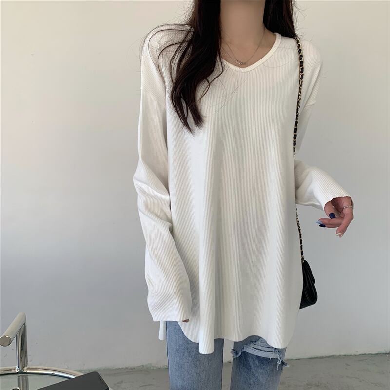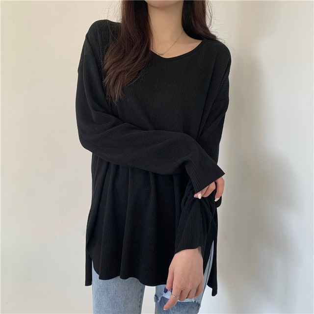 トップス Tシャツ 襟なし Vネック 袖あり 長袖 ストレート 無地 大人 おしゃれ シンプル 大人女子 こなれ感 抜け感 存在感 ラフ ルーズ 春 秋 10代 20代 30代 40代 50代 レディース 学生 女の子 ママ 通学 デート お出かけ 女子会 休日 イベント リゾート 旅行 着回し 普段使い 重ね着 韓国系 コーデ スタイル 楽ちん 体系カバー モテ プレゼント ギフト 誕生日 M L XL 2XL 3XL 4XL ホワイト ブラック ブラウン ピンク