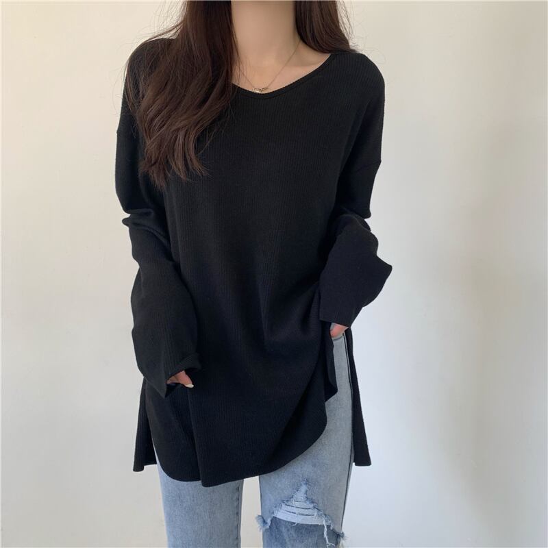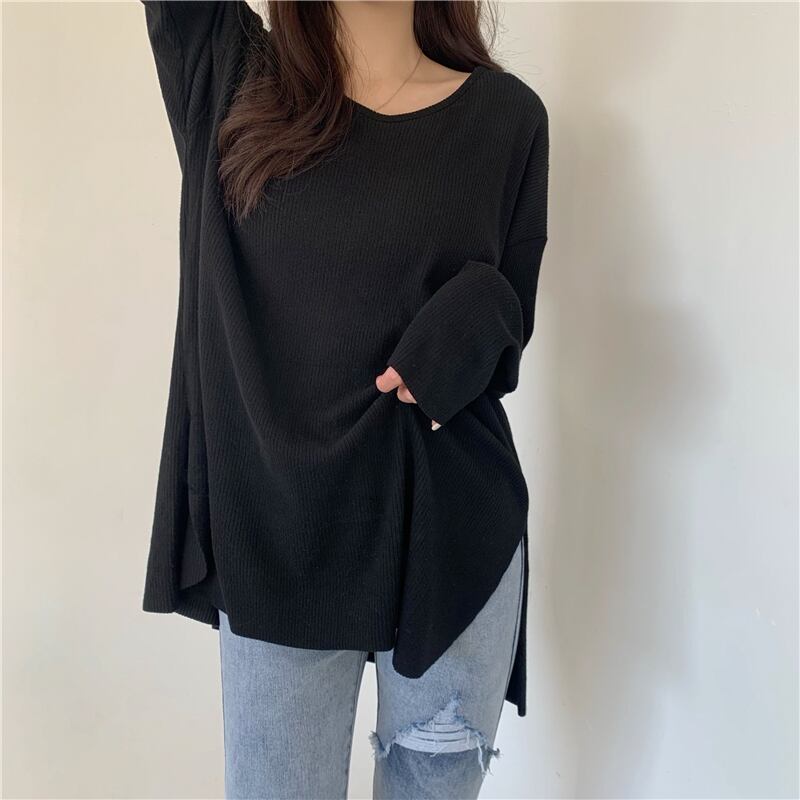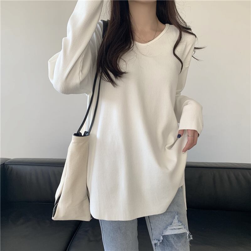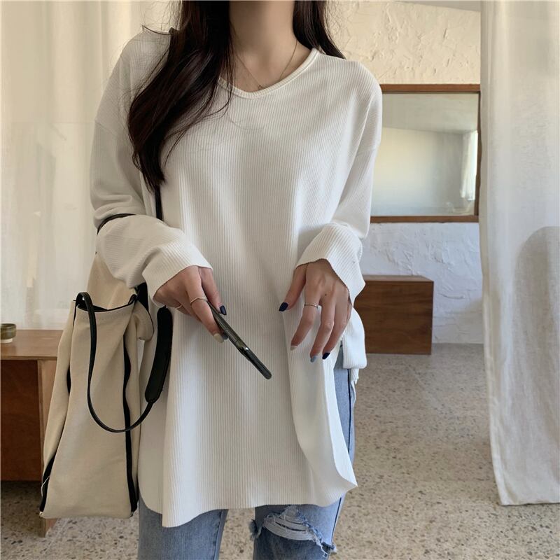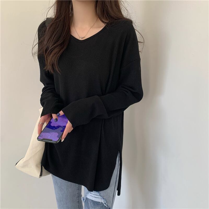 トップス Tシャツ 襟なし Vネック 袖あり 長袖 ストレート 無地 大人 おしゃれ シンプル 大人女子 こなれ感 抜け感 存在感 ラフ ルーズ 春 秋 10代 20代 30代 40代 50代 レディース 学生 女の子 ママ 通学 デート お出かけ 女子会 休日 イベント リゾート 旅行 着回し 普段使い 重ね着 韓国系 コーデ スタイル 楽ちん 体系カバー モテ プレゼント ギフト 誕生日 M L XL 2XL 3XL 4XL ホワイト ブラック ブラウン ピンク