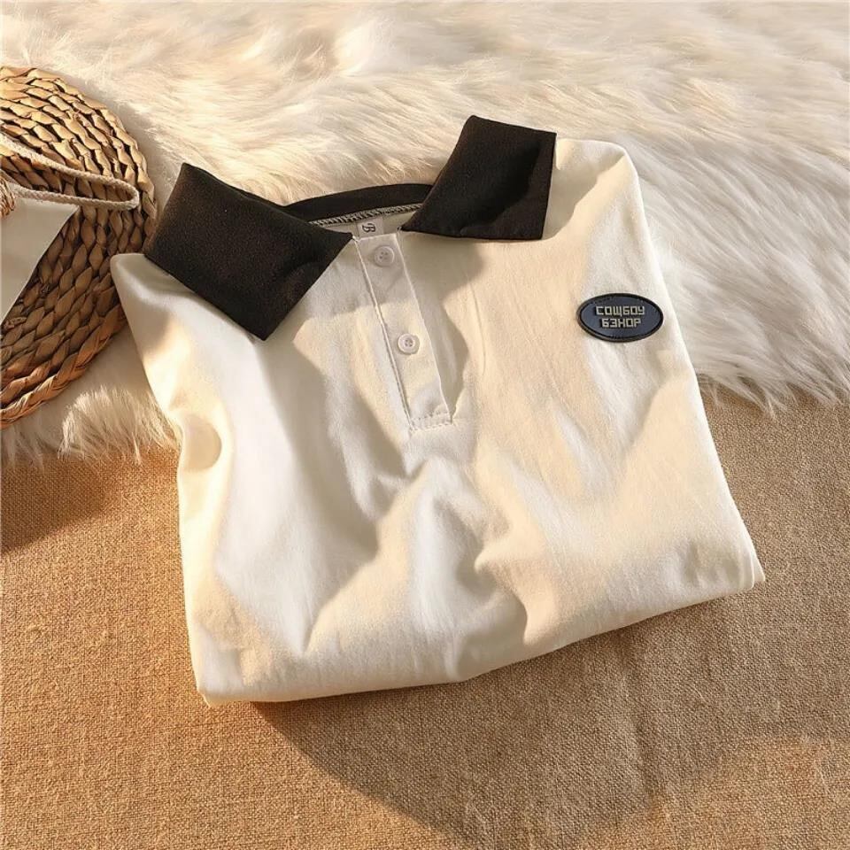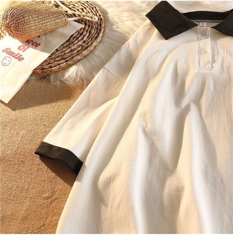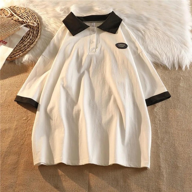 トップス ポロシャツ 白トップス 袖あり 半袖 5分袖 五分袖 襟付き ストレート ワイド 伸縮性 前ボタン 綿 シンプル カジュアル 大人 おしゃれ お洒落 レトロ こなれ感 ラフ メンズライク ボーイッシュ 主役級 存在感 抜け感 無地 ワッペン 春 夏 10代 20代 30代 レディース 女性用 通勤 学生 通学 デート お出かけ お泊まり 休日 運動 旅行 着回し 普段使い 韓国系 L XL 2XL 3XL 4XL ビッグサイズ ゆったり ホワイト