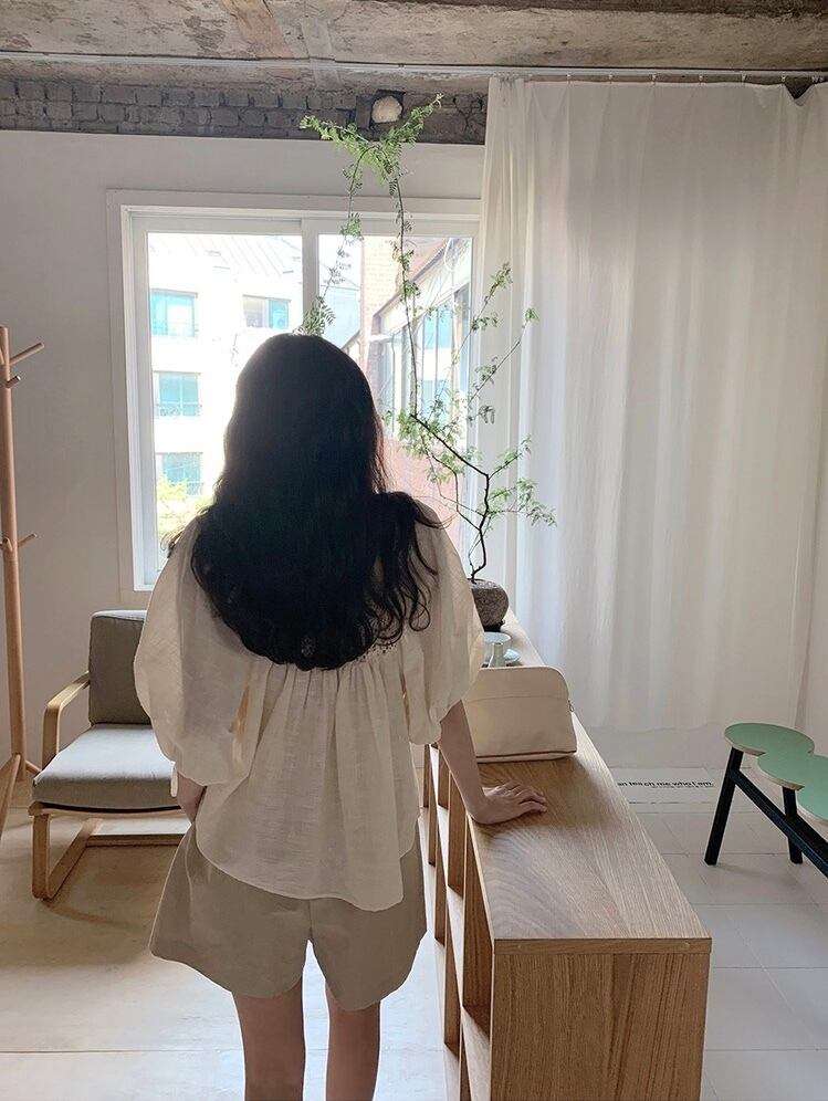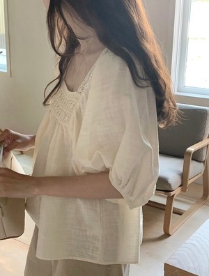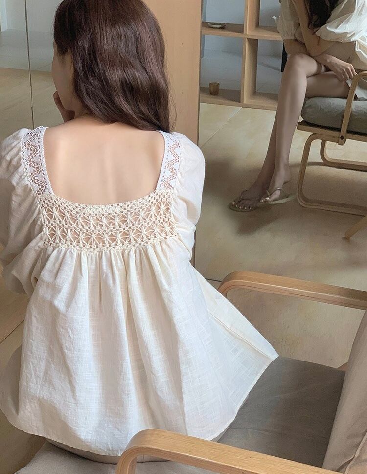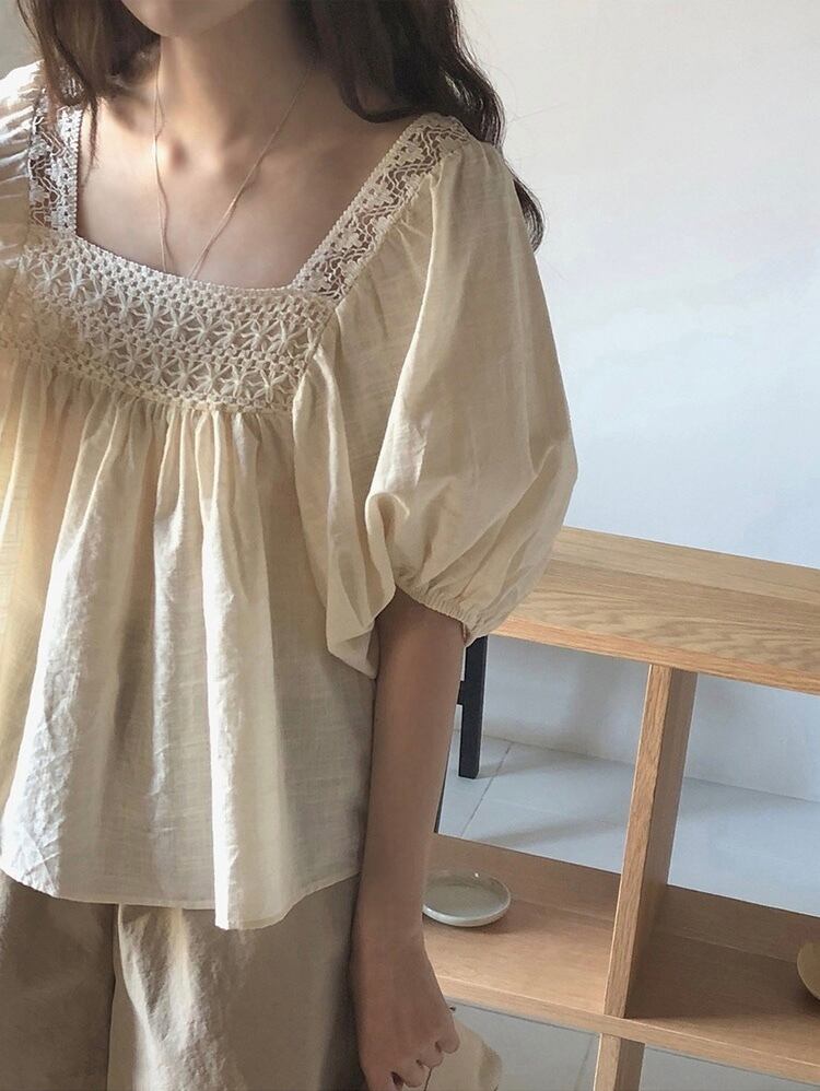 スクエアネックが特徴的なアイテム。