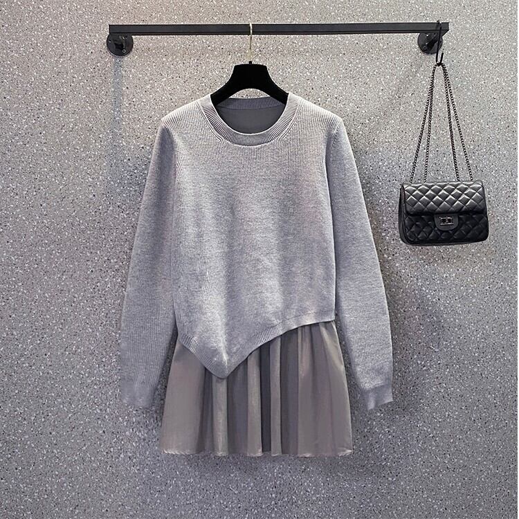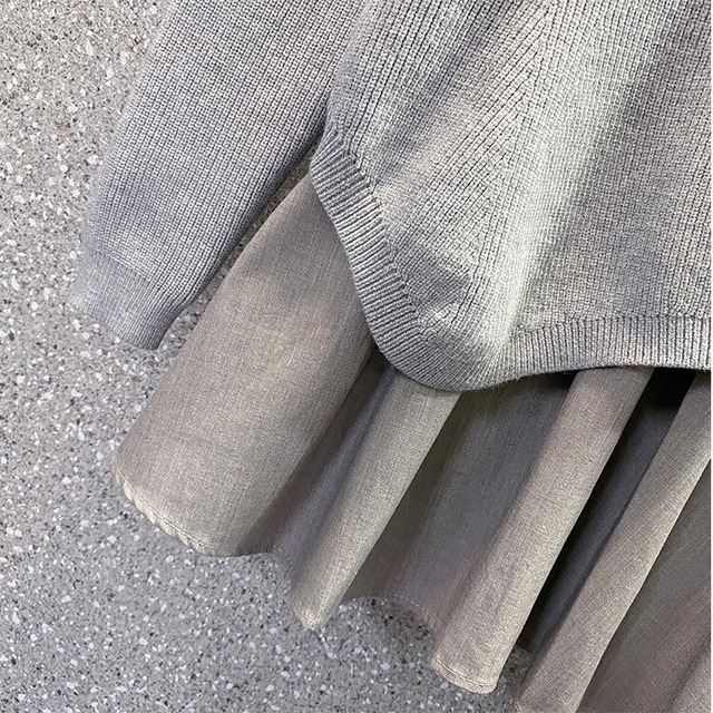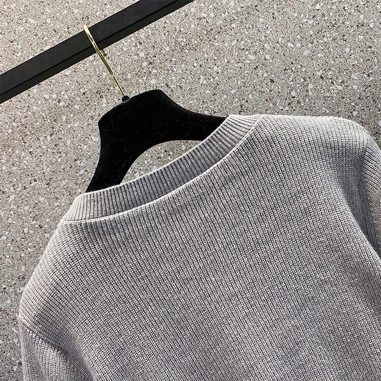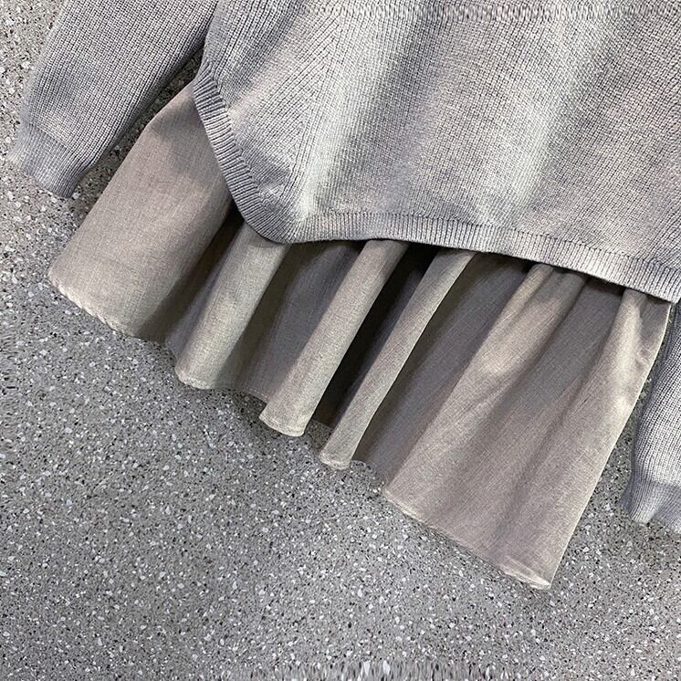 トップス ニットソー セーター 長袖 ラウンドネック セミフレア アシンメトリー 切り替えデザイン ドッキング 異素材MIX かわいい 大人可愛い きれいめ シンプル 大人 上品 おしゃれ お洒落 大人可愛い 大人女子 こなれ感 ラフ ラブリー キュート ガーリー エレガント 存在感 とろみ感 抜け感 無地 10代 20代 30代 40代 レディース 女性用 ママ OL 通勤 学生 通学 デート お出かけ 女子会 休日 イベント 旅行 ホテル レストラン 普段使い 楽ちん モテ 体系カバー 灰色 グレー