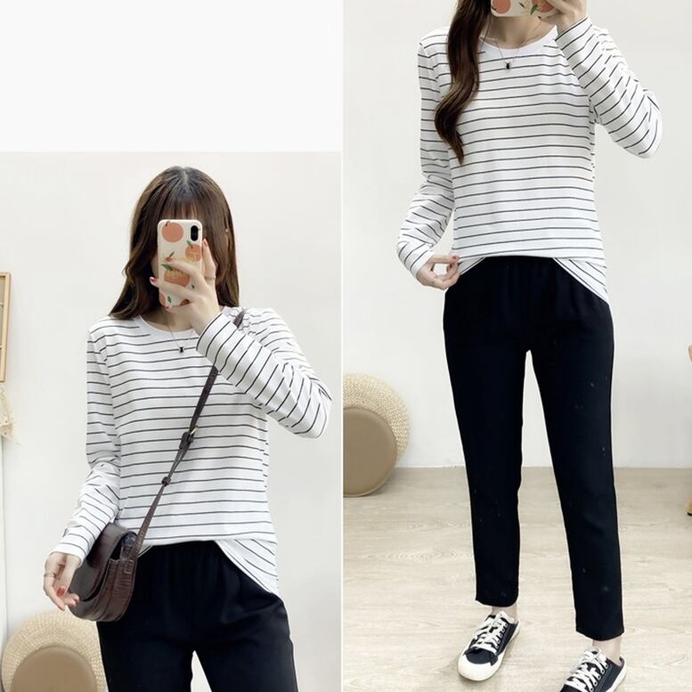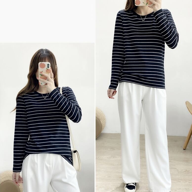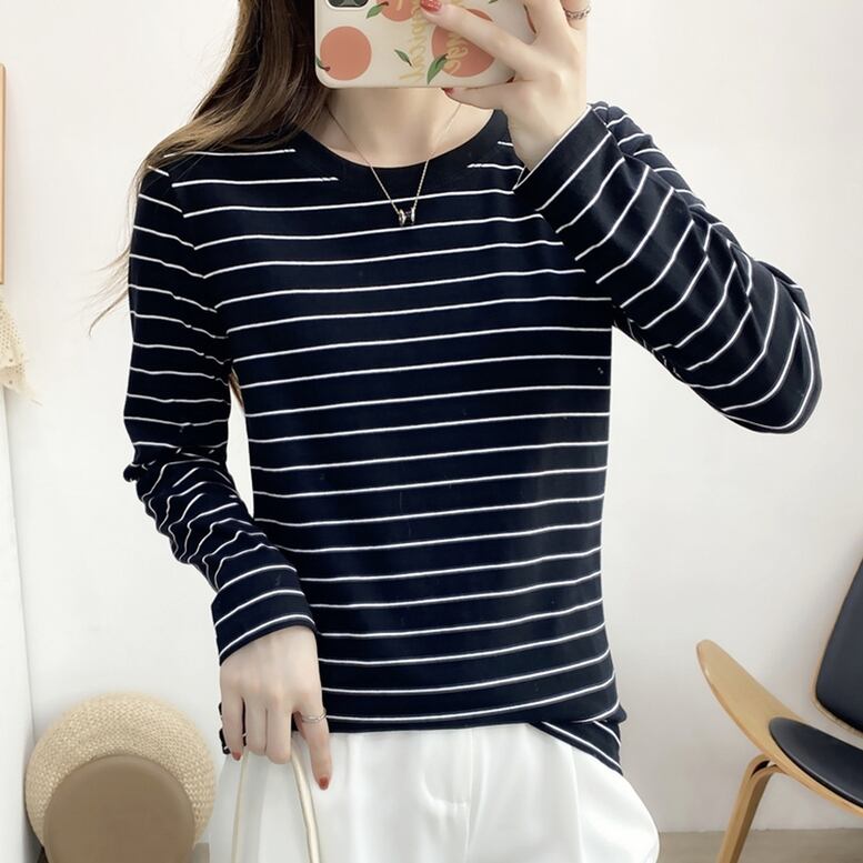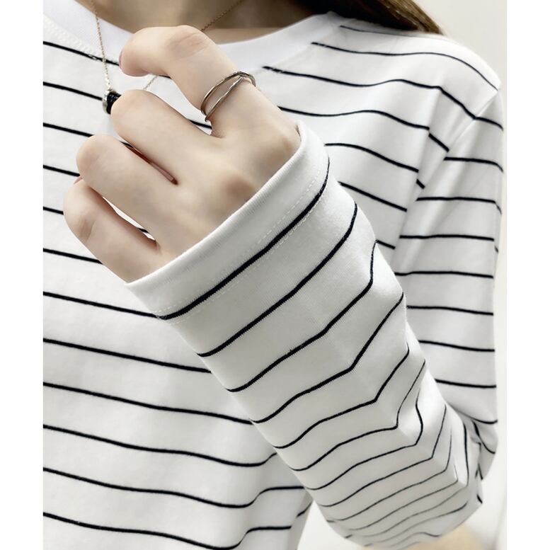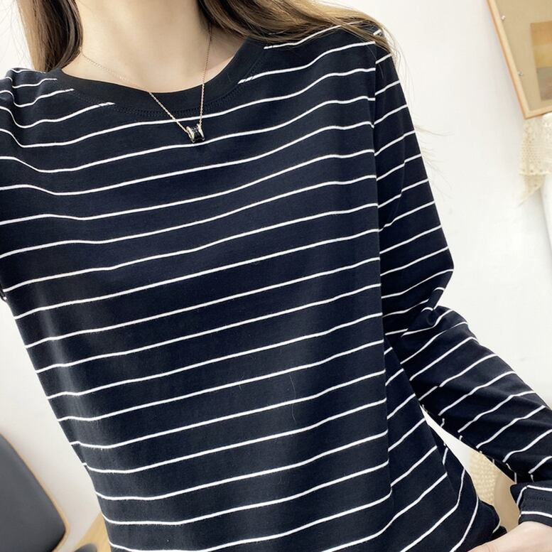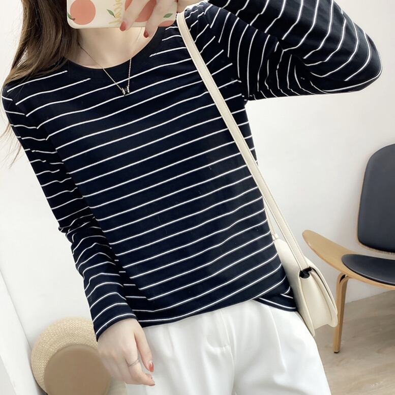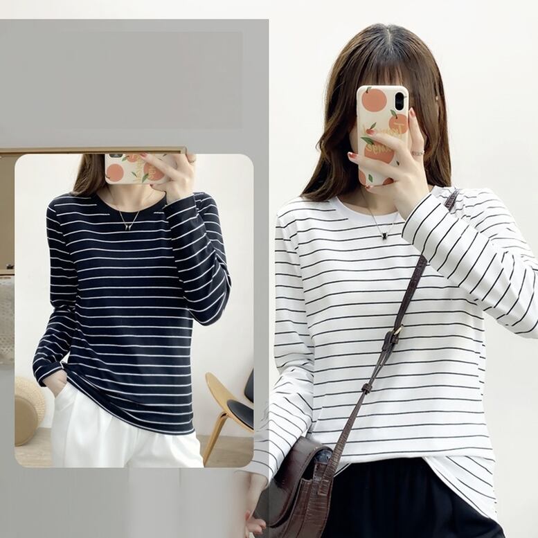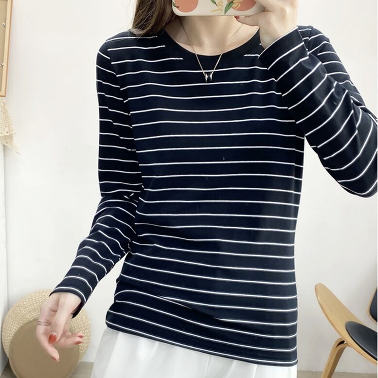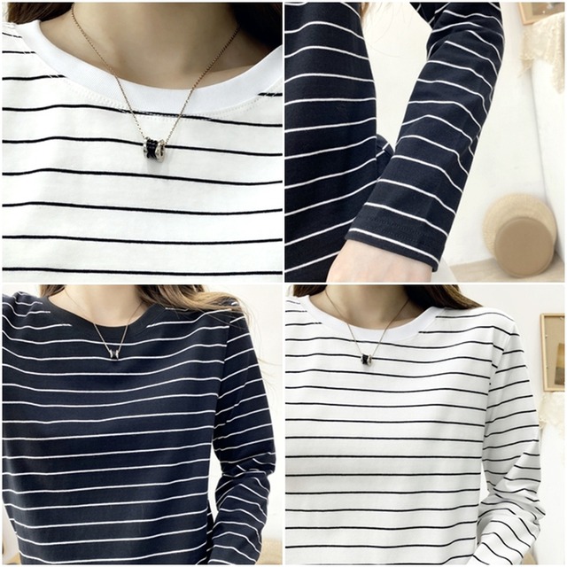 Tシャツ トップス ボーダーロングスリーブTシャツ レディース ボーダーTシャツ 長袖 ラウンドネック シャツ ボーダー柄 コットンシャツ プルオーバー 白 黒 ホワイト ブラック シンプル きちんと感 可愛い キレイめ 上品 フェミニン 知的 ハンサム マニッシュ カジュアル 春 夏 秋 冬 シーズンレス デイリー おでかけ 仕事 オンオフ兼用 公園コーデ アウトドア 普段着 定番 ベーシック 王道 万能 機能性 コンパクト 細見え 動きやすい 軽やか ゆったり 体型カバー インスタ映え