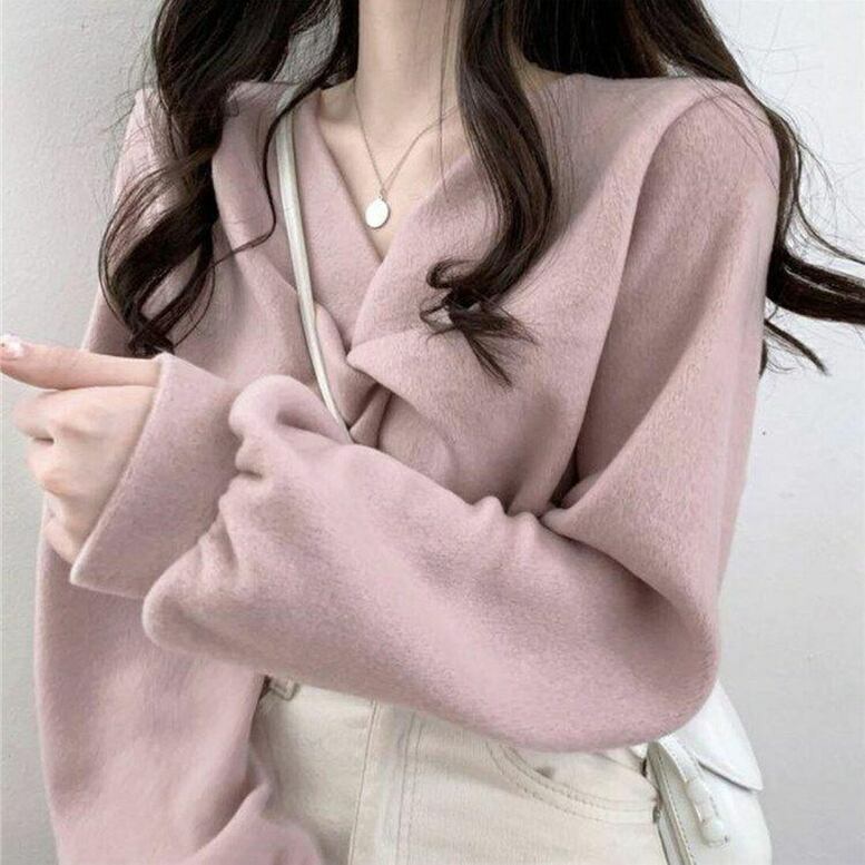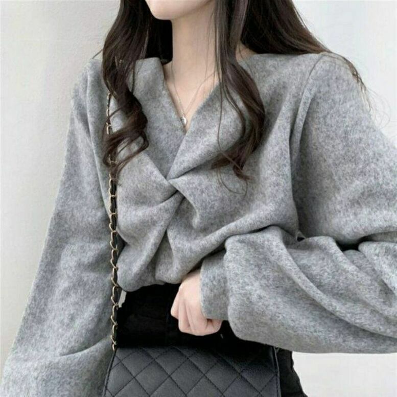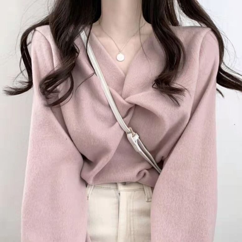 ニット トップス ツイストニットシャツ レディース カットソー ツイスト ねじり 長袖 ボリュームスリーブ Vネック 無地 ピンク ホワイト グレー 白 灰色 オシャレ シンプル きちんと感 可愛い キレイめ 上品 フェミニン ちょい甘 春 夏 秋 冬 デイリー おでかけ 仕事 オンオフ兼用 公園コーデ アウトドア 普段着 スマート コンパクト 細見え スタイルアップ 高見え 新鮮 上級者 主役級 鮮度アップ トレンド オーバーサイズ ゆったり 体型カバー インスタ映え シャーベットカラー アースカラー