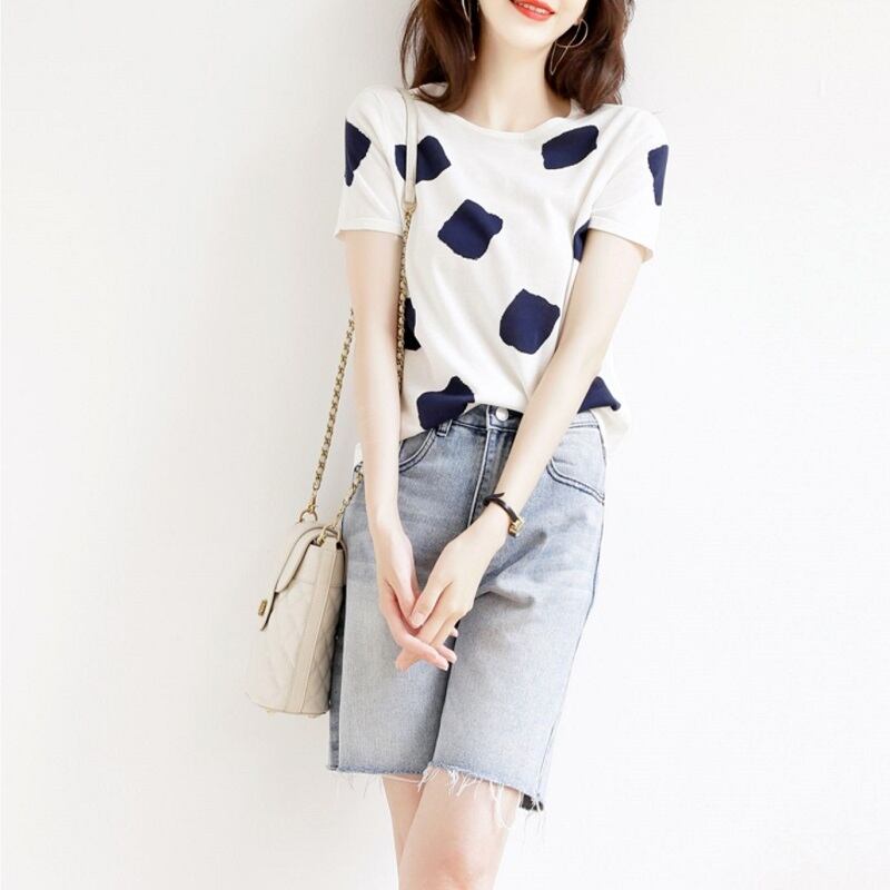 トップス Tシャツ ミディアム丈 袖あり 半袖 ラウンドネック 襟なし 薄手 かわいい 大人可愛い きれいめ シンプル カジュアル 大人 上品 おしゃれ 大人女子 こなれ感 ラフ ラブリー キュート 個性的 水玉 春 夏 秋 10代 20代 30代 レディース 女性用 OL 通勤 学生 通学 デート お出かけ 女子会 お泊まり 休日 運動 パーティー イベント 旅行 海 レストラン 着回し 普段使い コーデ スタイル モテ サイズ M L 色展開 ホワイト ネイビー