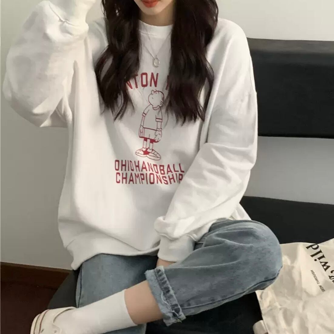 トレンドのビックシルエットトレーナー。