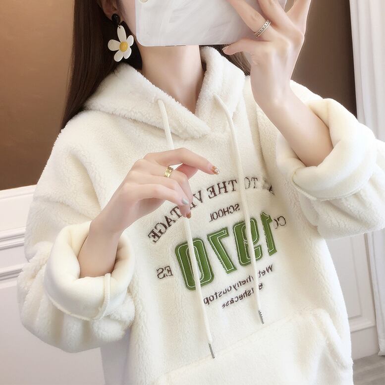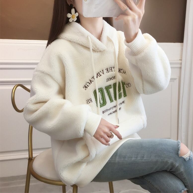 もこもこの風合いが可愛いプルオーバーニットパーカー