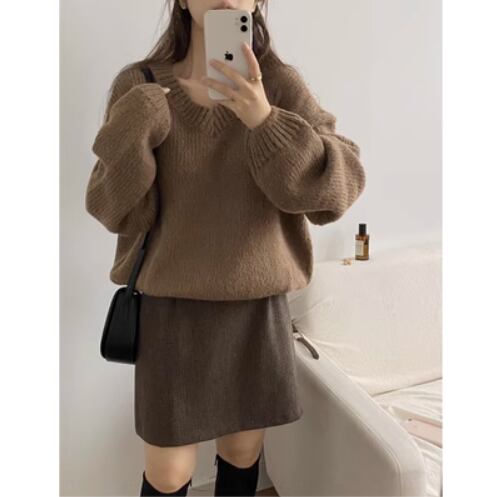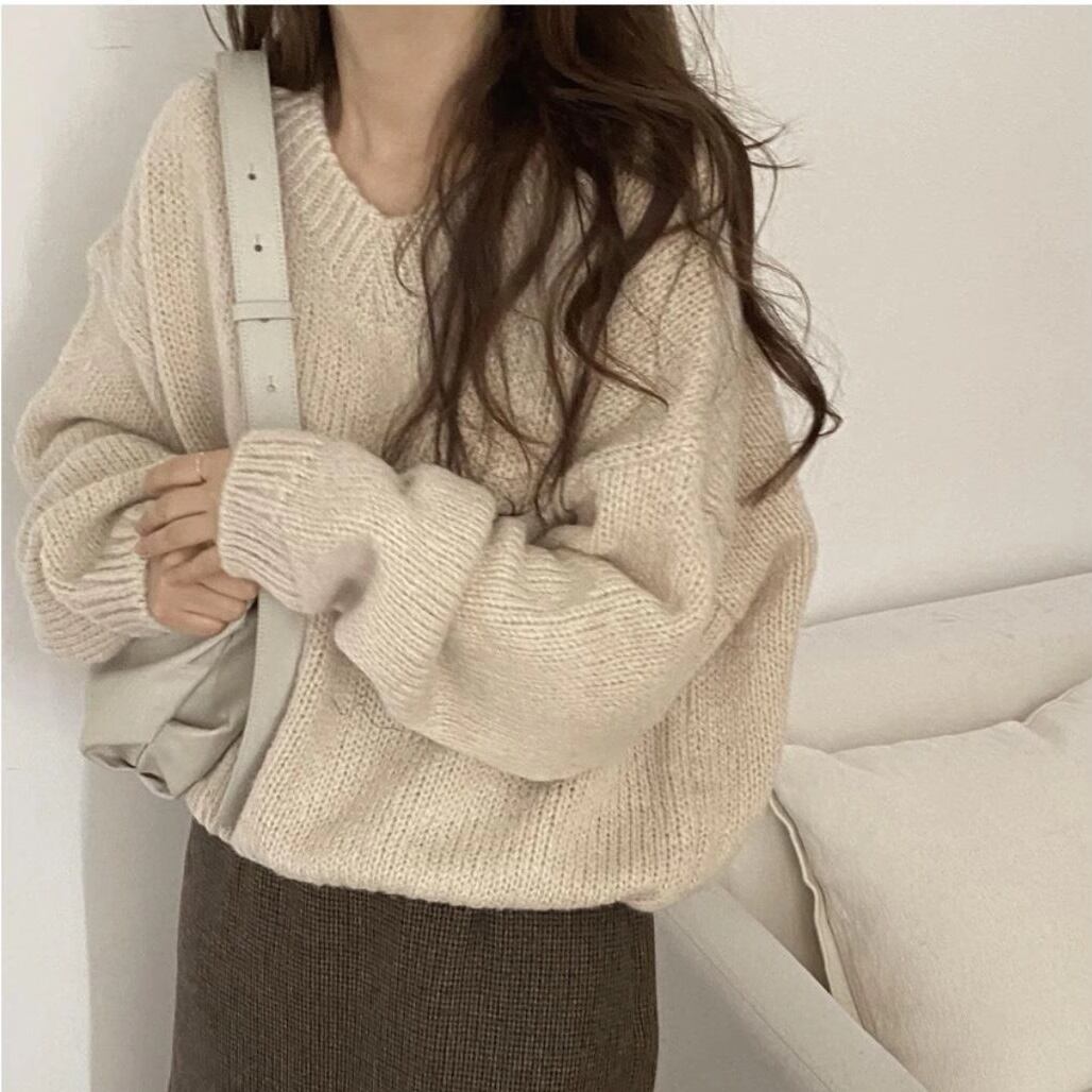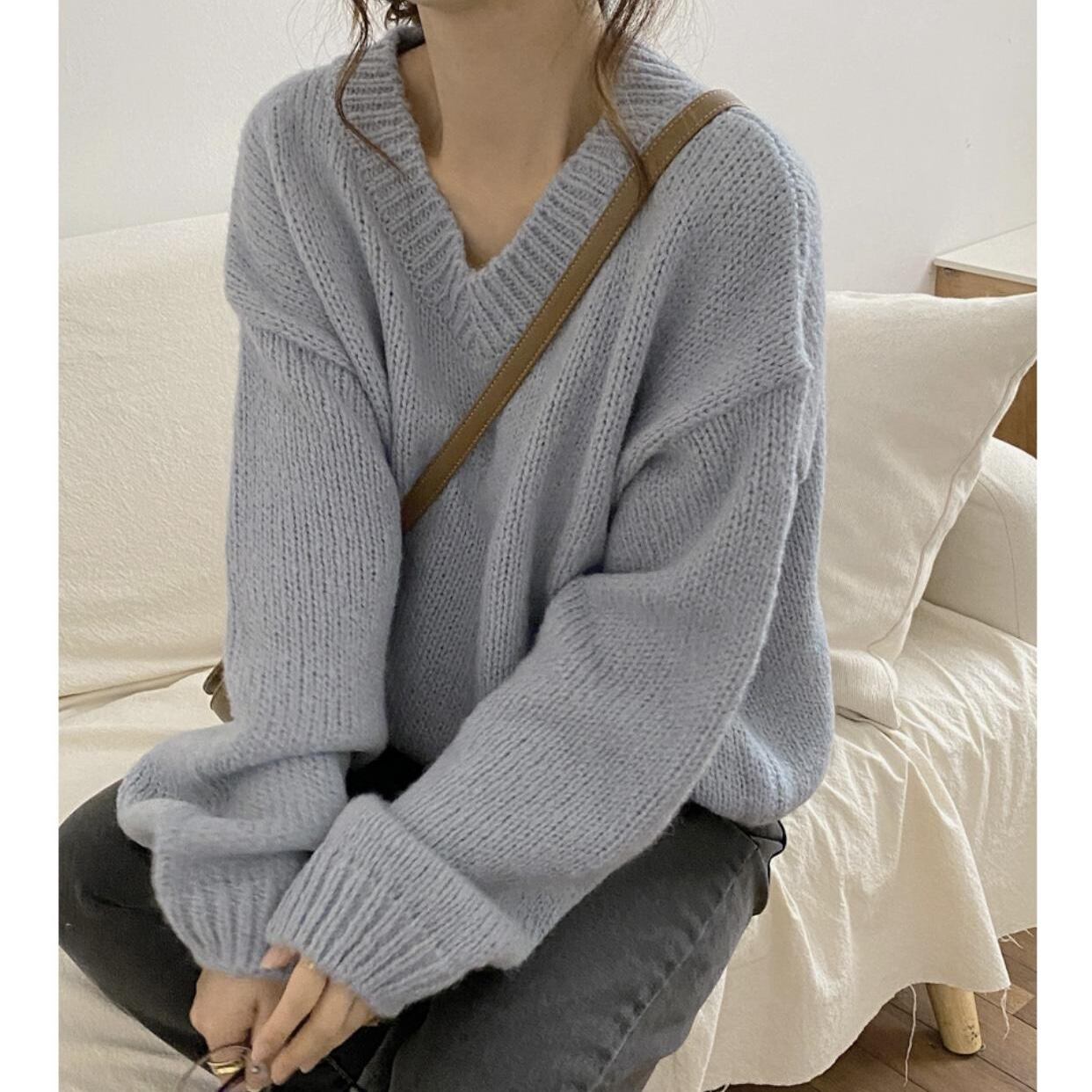 ざっくり編み トップス セーター プルオーバー ミディアム丈 長袖 ドロップショルダー 襟なし Vネック ニット かわいい 大人可愛い シンプル カジュアル 上品 おしゃれ お洒落 レトロ こなれ感 ナチュラル 無地 秋 冬 レディース ママ 女の子 学生 通学 デート お出かけ 公園デビュー 女子会 休日 普段使い 重ね着 着回し 韓国風 オルチャン ファッション コーデ 体系カバー M L XL 2XL 3XL 4XL 大きいサイズ ゆったり ライトブルー ダークブラウン ピンク ベージュ カラバリ