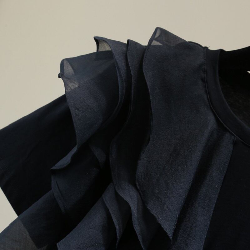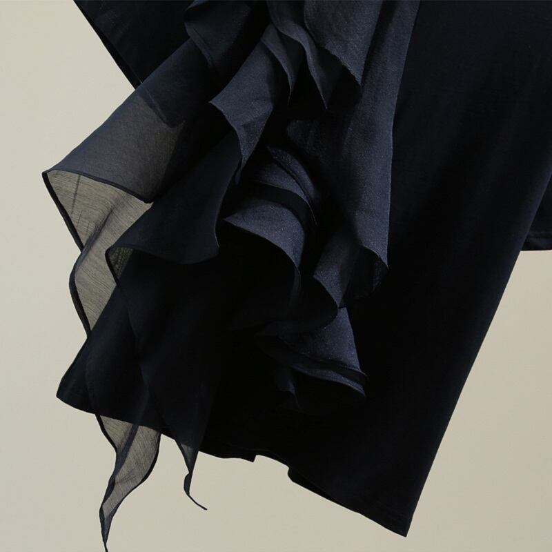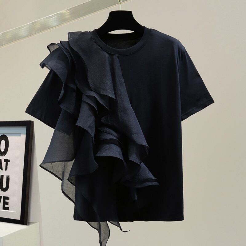 トップス Tシャツ ミディアム丈 袖あり 半袖 ラウンドネック 襟なし ストレート フリル かわいい 大人可愛い きれいめ カジュアル 大人 上品 おしゃれ こなれ感 ラフ ラブリー キュート ガーリー 個性的 存在感 無地 夏 10代 20代 30代 レディース 女性用 OL 通勤 学生 通学 デート お出かけ 女子会 お泊まり 休日 パーティー 旅行 ホテル ガーデン レストラン 着回し 普段使い お揃い ファッション コーデ 楽ちん プレゼント ギフト サイズ M L 色展開 ブラック