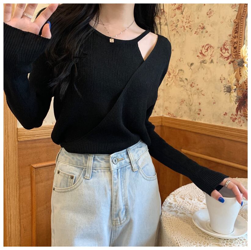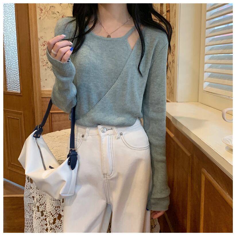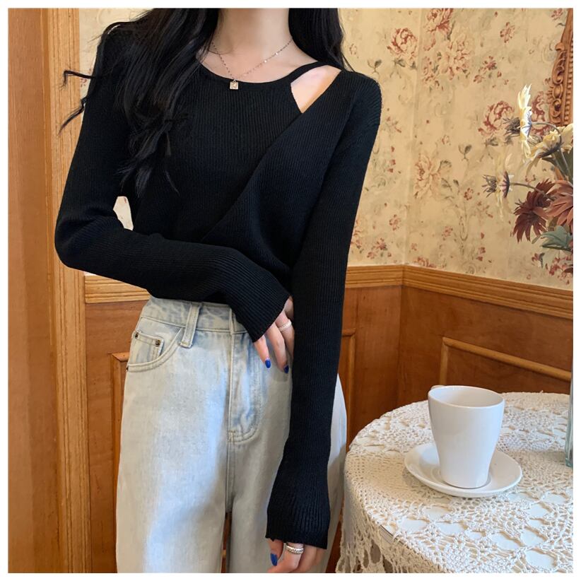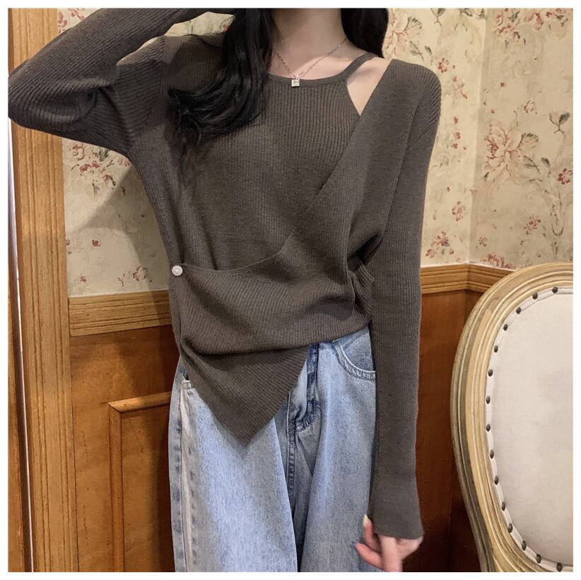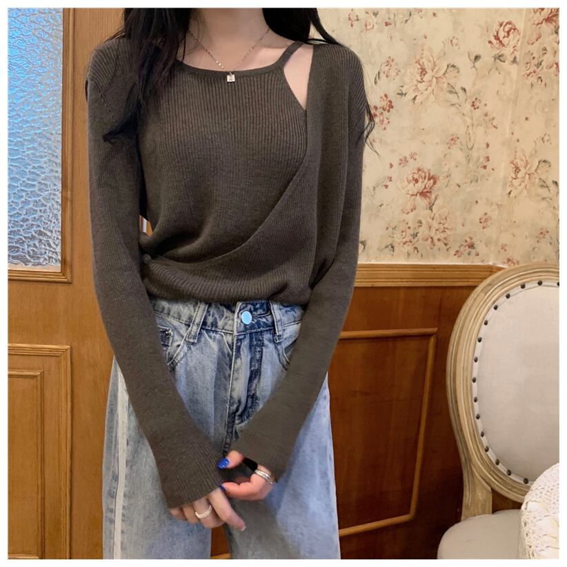 フェイクレイヤード 片側カットアウト アシンメトリーデザイン トップス ニットソー ミディアム丈 長袖 スリム スマート すっきり 伸縮性 リブ シンプル カジュアル おしゃれ お洒落 セクシー 大人っぽい かっこいい クール 個性的 存在感 スタイリッシュ 女っぽ 学生 通学 デート お出かけ 女子会 普段使い 重ね着風 合わせやすい 韓国風 韓国っぽ オルチャン ファッション コーデ スタイル S M L XL 黒 ブラック 青 ブルー 灰色 ダークグレー 緑 ビーンズグリーン ベージュ カラバリ