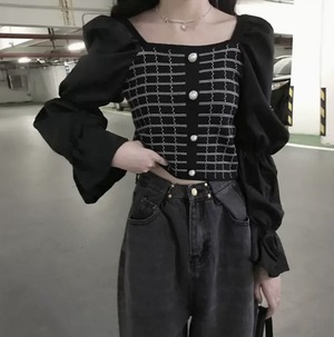 トップス デート シャツ ブラウス カットソー ショート ショート丈 袖あり 長袖 パフスリーブ スリム タイト 細身 かわいい 大人可愛い きれいめ シンプル カジュアル 大人 上品 おしゃれ お洒落 主役級 存在感 春 秋 冬 オールシーズン 10代 20代 30代 レディース 女性用 OL 学生 デート お出かけ 公園デビュー 女子会 休日 イベント 旅行 着回し 普段使い ファッション コーデ 楽ちん モテ トレンド 流行 インスタ映え S M L 黒 ブラック