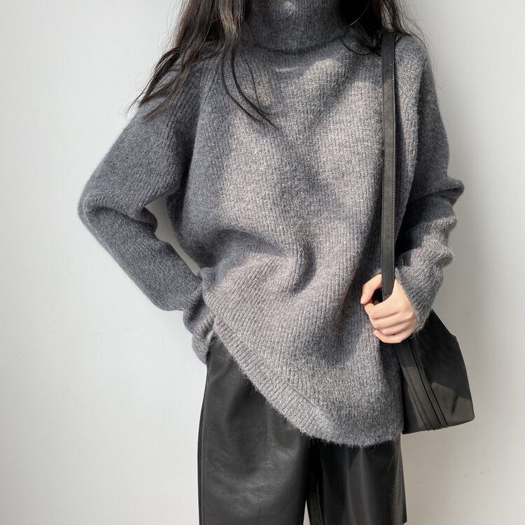 オーバーサイズ トップス セーター プルオーバー ミディアム丈 長袖 ラグランスリーブ ハイネック タートルネック 伸縮性 ストレッチ かわいい 大人可愛い シンプル カジュアル きれいめ おしゃれ お洒落 こなれ感 かっこいい 秋 冬 無地 学生 通学 デート お出かけ 公園デビュー 女子会 普段使い 着回し 合わせやすい 韓国風 オルチャン ファッション コーデ 体系カバー フリーサイズ 大きめ ゆったり ゆる サイズ ブラック ホワイト ヴィンテージブルー ダークグレー フローラルブラウン カラバリ