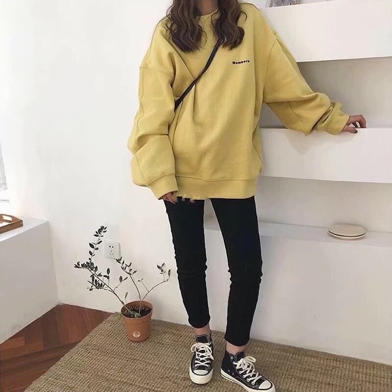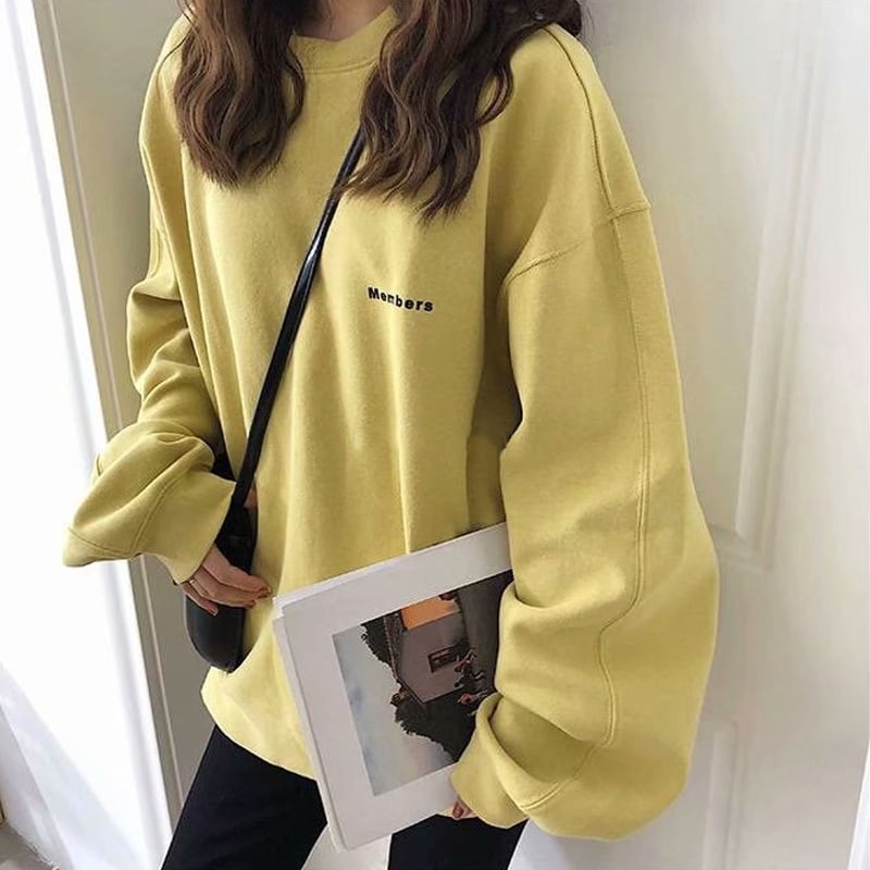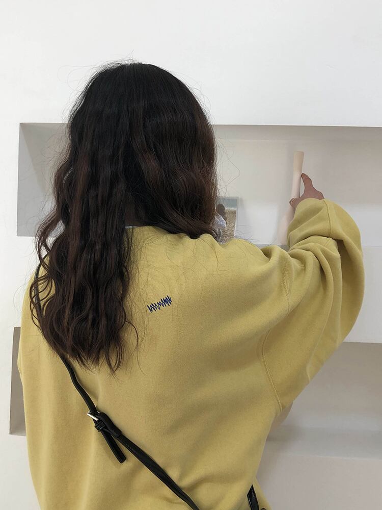 オーバーサイズ 胸ロゴ バックジグザグ模様 ワンポイント トップス スウェット プルオーバー トレーナー ミディアム丈 長袖 ドロップショルダー 襟なし クルーネック シンプル カジュアル おしゃれ お洒落 こなれ感 大人っぽい ボーイッシュ メンズライク リラクシー ストリート 春 秋 冬 無地 学生 通学 デート お出かけ 公園デビュー 女子会 休日 普段使い 重ね着 着回し 韓国風 オルチャン ファッション コーデ スタイル 体系カバー S M L 大きめ ゆったり ゆる サイズ 黄色 イエロー