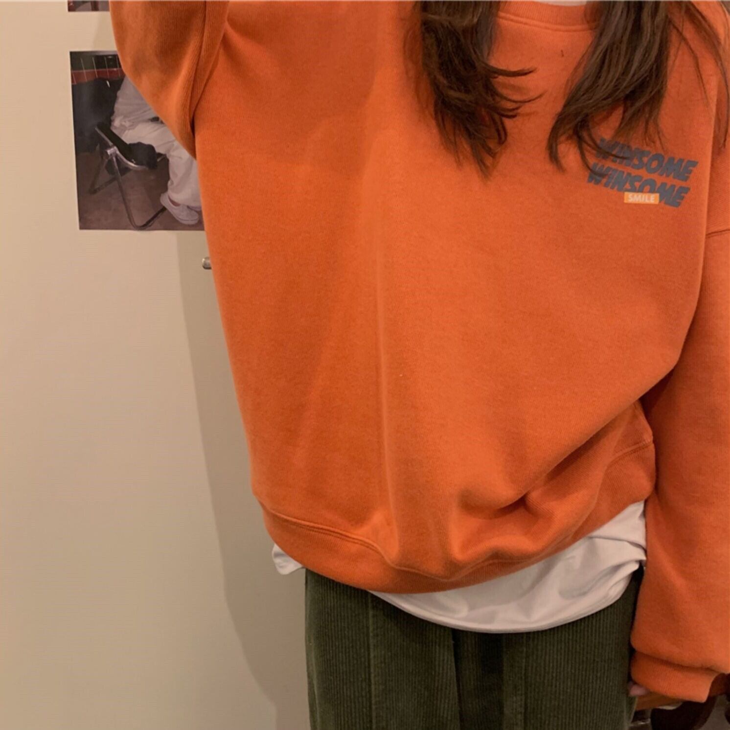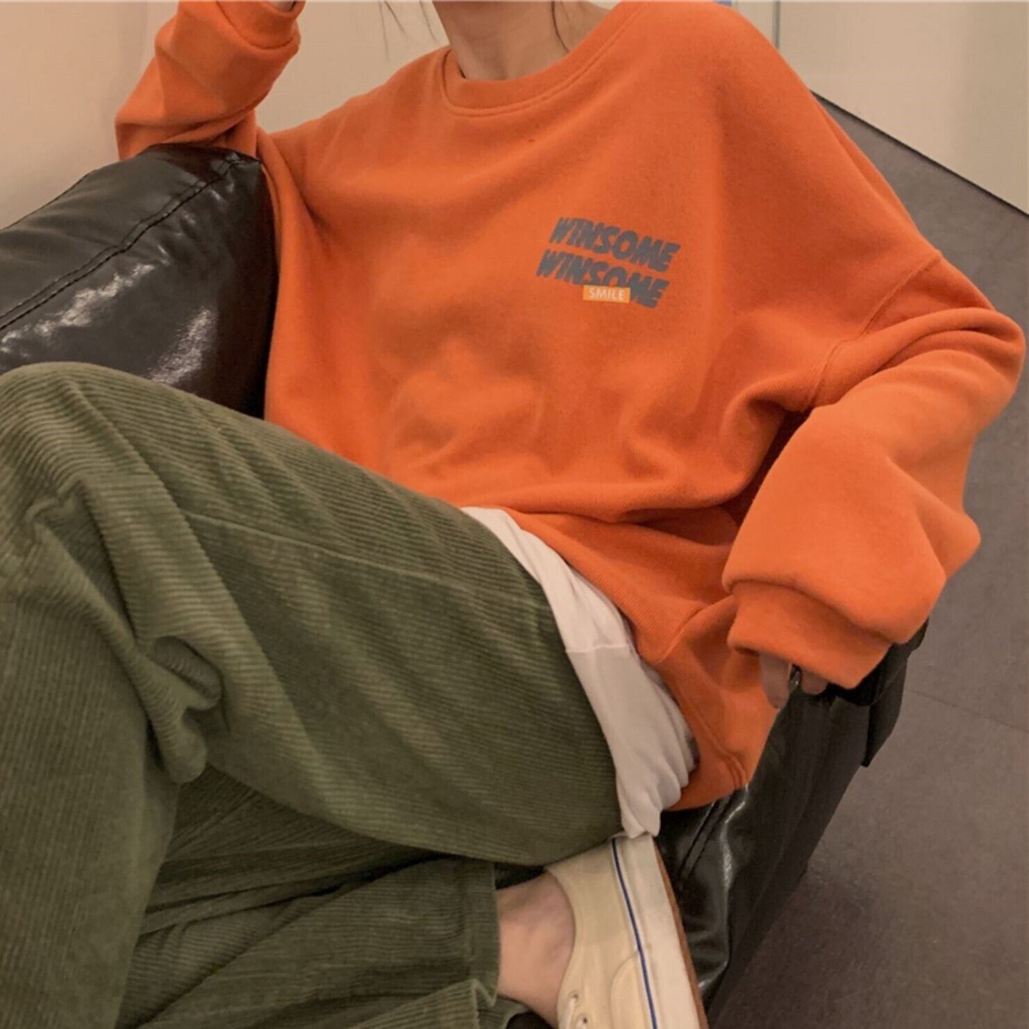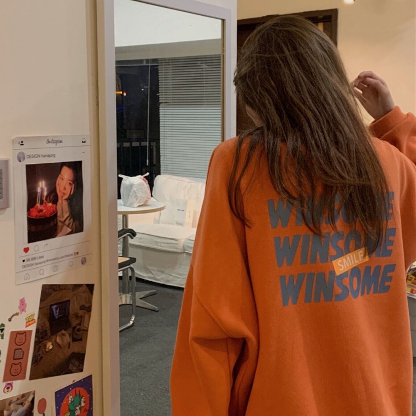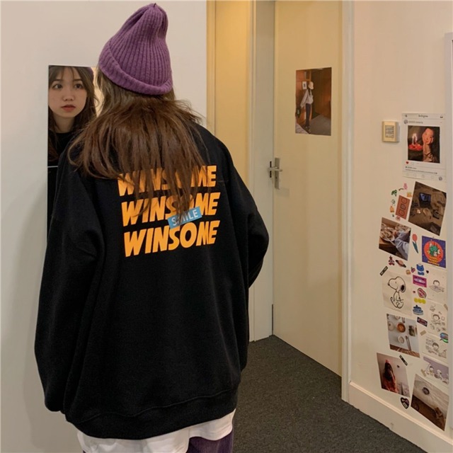 オーバーサイズ 背中&胸ロゴプリント トップス スウェット プルオーバー トレーナー ミディアム丈 長袖 ドロップショルダー 襟なし ラウンドネック バックシャン バックコンシャス シンプル カジュアル おしゃれ お洒落 こなれ感 大人っぽい ボーイッシュ ストリート 春 秋 冬 無地 学生 通学 お出かけ 休日 普段使い 重ね着 着回し 韓国風 オルチャン ファッション コーデ 体系カバー M L XL XXL 3XL 4XL 大きいサイズ ゆったり ゆるめ ブラック ブルー オレンジ カラバリ