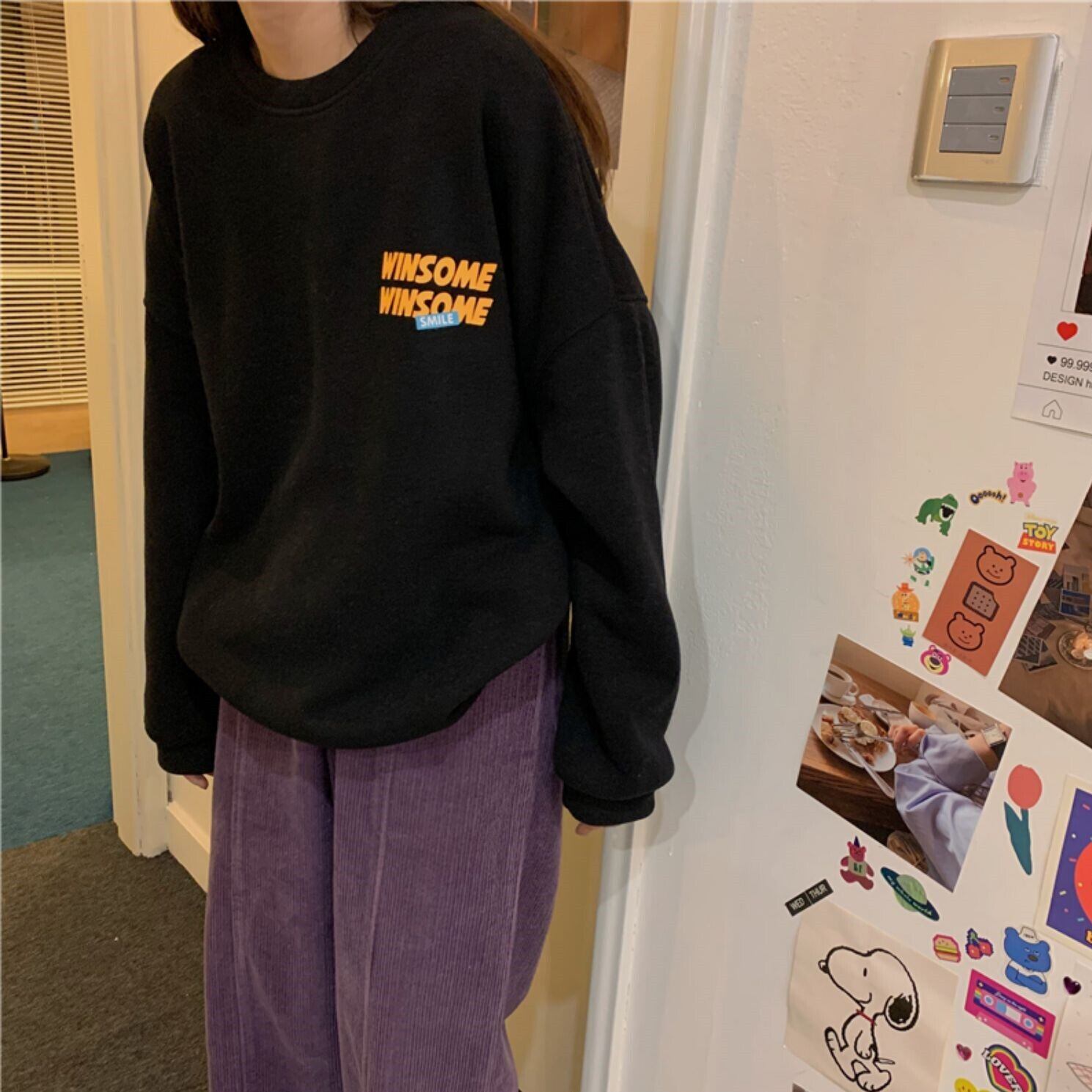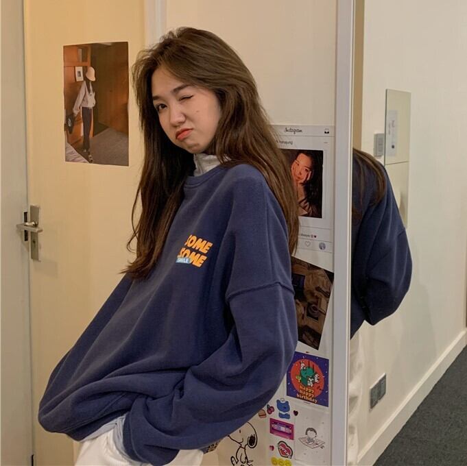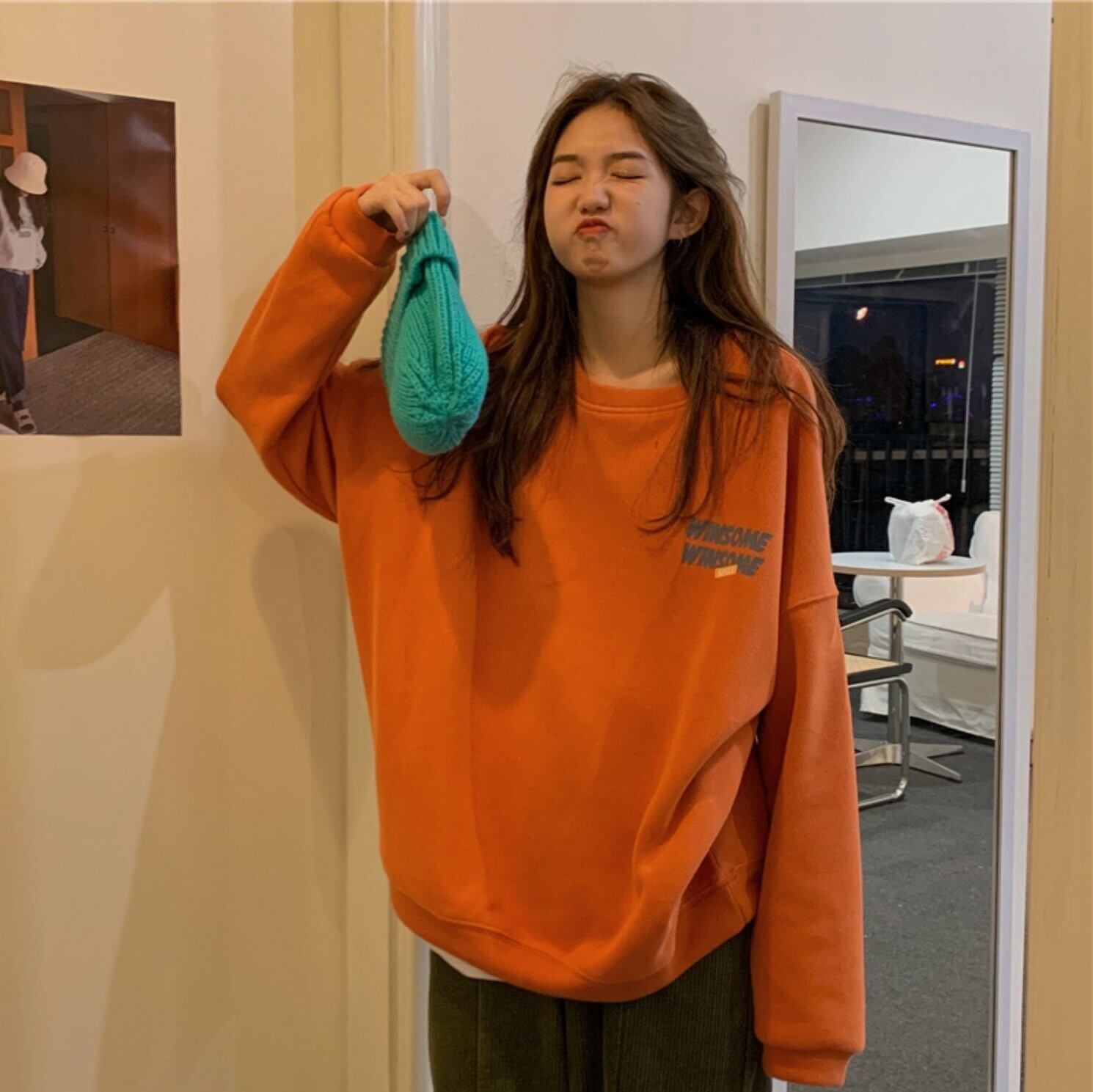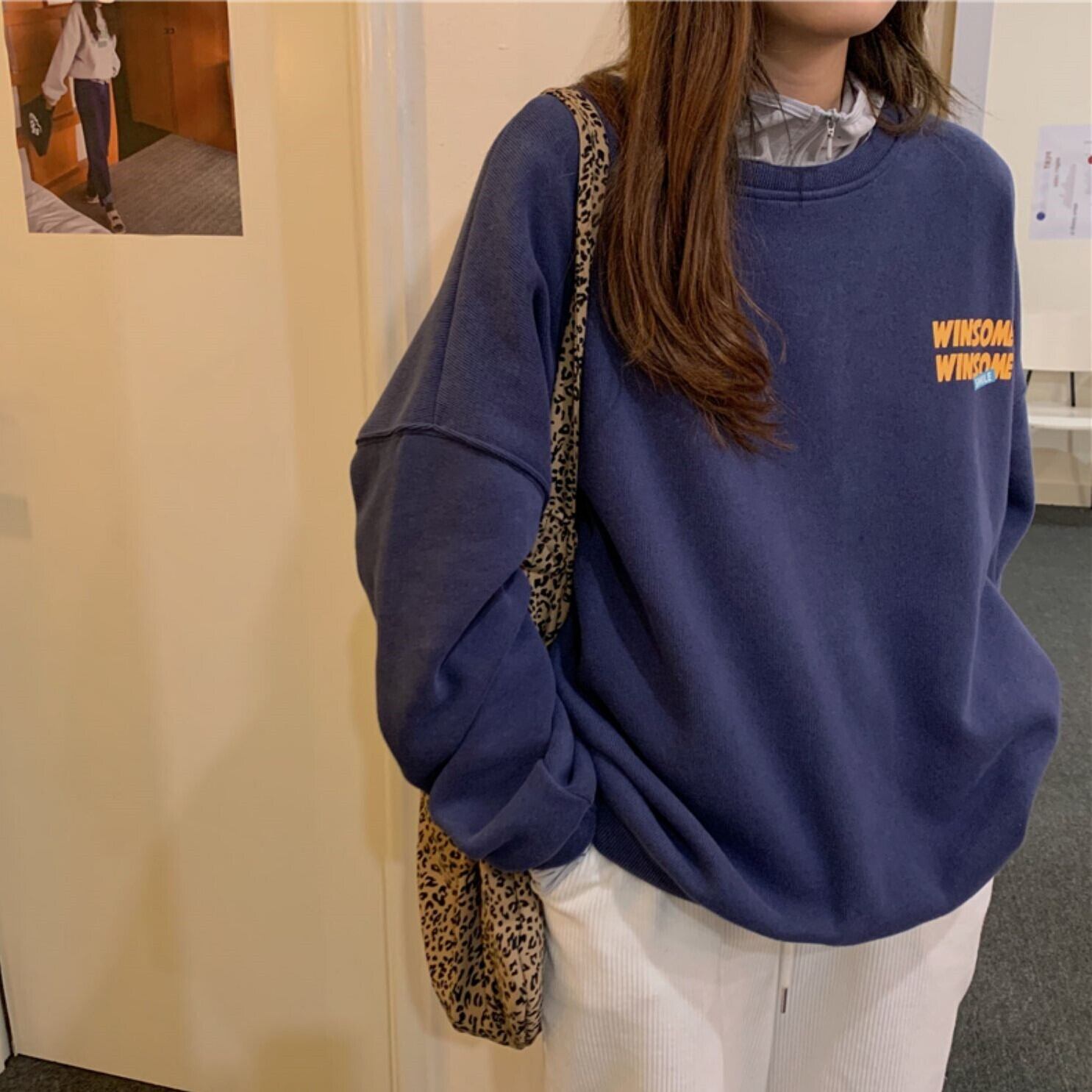オーバーサイズ 背中&胸ロゴプリント トップス スウェット プルオーバー トレーナー ミディアム丈 長袖 ドロップショルダー 襟なし ラウンドネック バックシャン バックコンシャス シンプル カジュアル おしゃれ お洒落 こなれ感 大人っぽい ボーイッシュ ストリート 春 秋 冬 無地 学生 通学 お出かけ 休日 普段使い 重ね着 着回し 韓国風 オルチャン ファッション コーデ 体系カバー M L XL XXL 3XL 4XL 大きいサイズ ゆったり ゆるめ ブラック ブルー オレンジ カラバリ