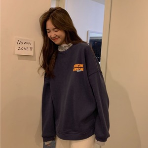 左胸と背中に英字ロゴプリント入りのスウェットトップス。