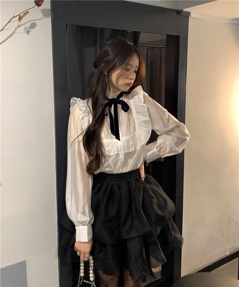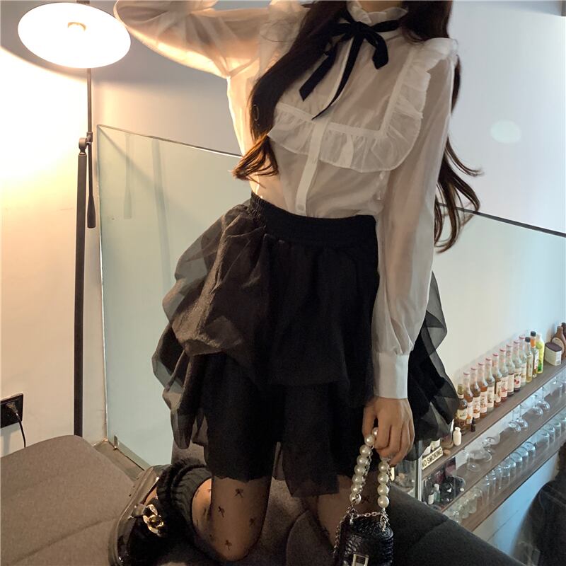 トップス スカート デート シャツ ブラウス カットソー ミニスカート 袖あり 長袖 かわいい 大人可愛い きれいめ シンプル カジュアル 大人 上品 おしゃれ お洒落 主役級 存在感 春 秋 オールシーズン 10代 20代 30代 レディース 女性用 OL 学生 デート お出かけ 公園デビュー 女子会 休日 イベント 旅行 着回し 普段使い ファッション コーデ 楽ちん モテ トレンド 流行 インスタ映え フリーサイズ 白 ホワイト 黒 ブラック