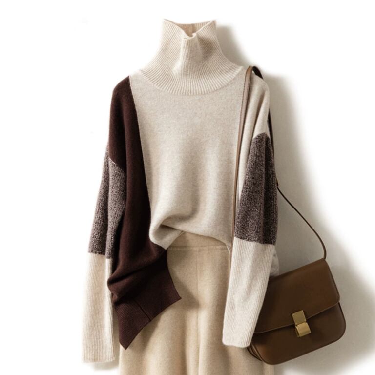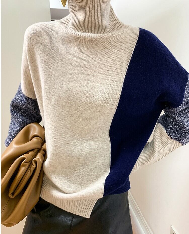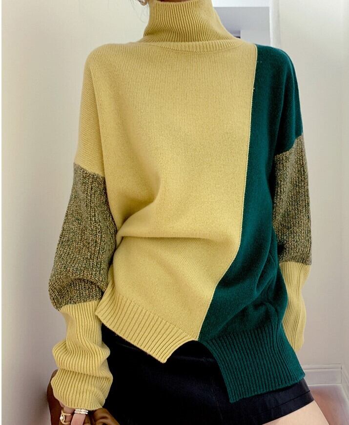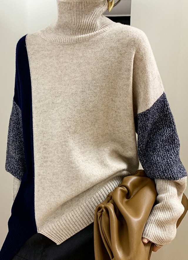 アシンメトリーで色合いがお洒落な長袖セーターです