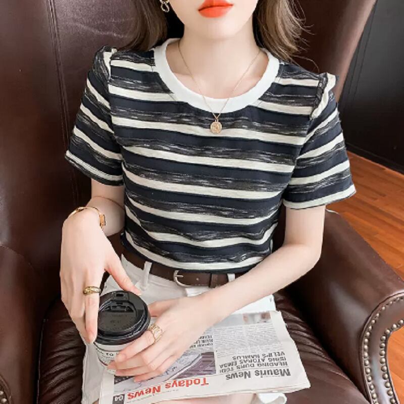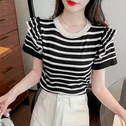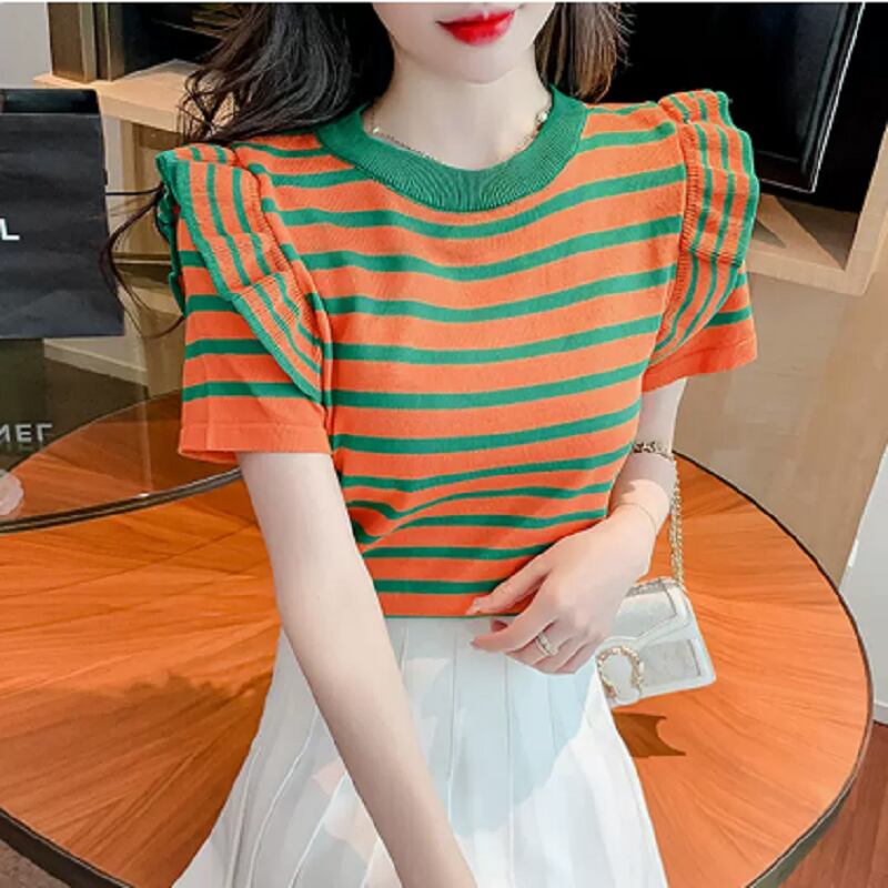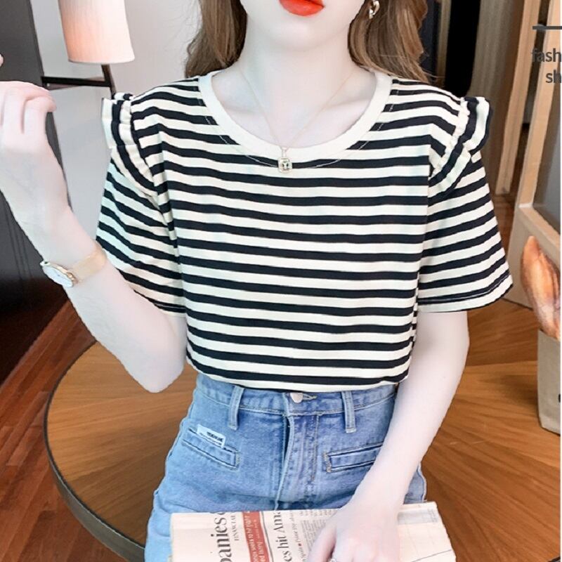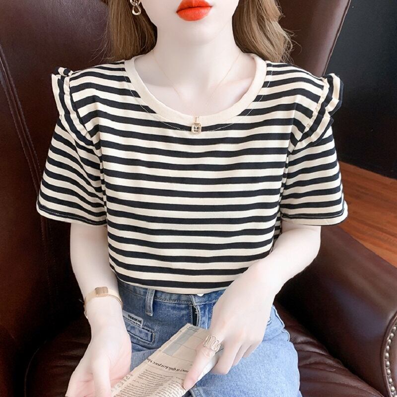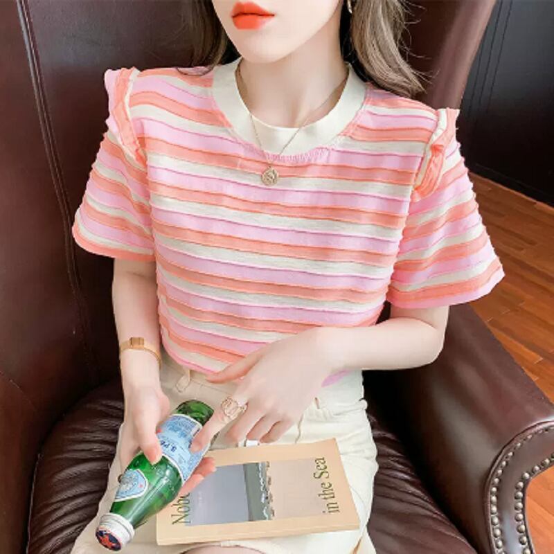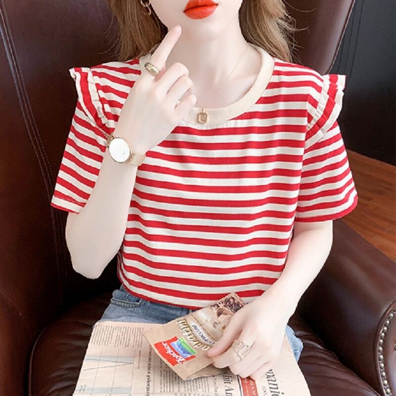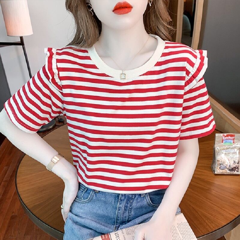 トップス Tシャツ ミディアム丈 袖あり 半袖 ラウンドネック 襟なし フリル かわいい カジュアル おしゃれ レトロ こなれ感 ラフ メンズライク スポーティー ラブリー キュート ルーズ 個性的 存在感 ボーダー 夏 10代 20代 30代 レディース 女性用 OL 通勤 学生 通学 デート お出かけ 女子会 お泊まり 休日 パーティー 旅行 着回し 普段使い 重ね着 お揃い ファッション プレゼント ギフト インスタ映え サイズ M L XL 色展開 ブラック レッド グリーン ピンク オレンジ