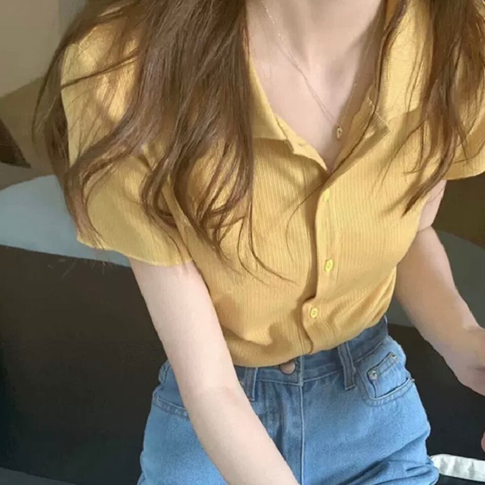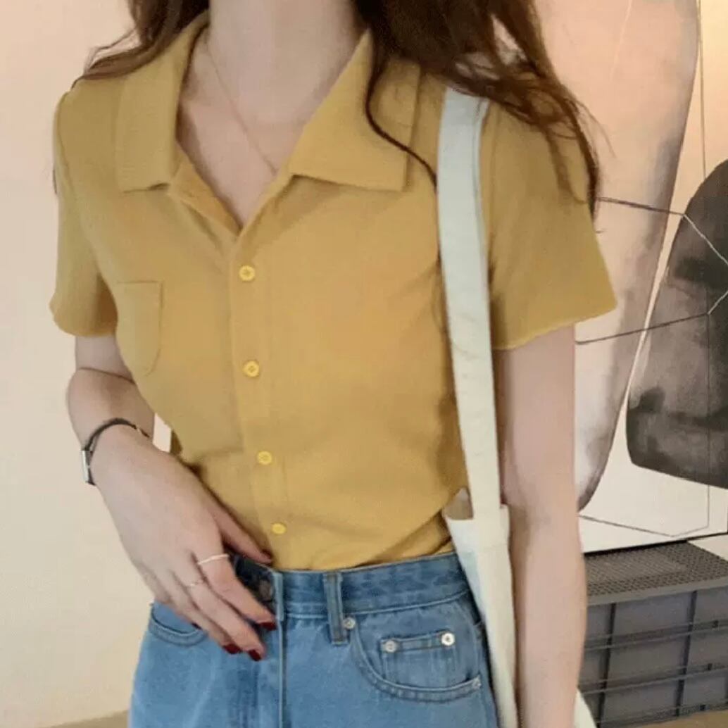 トップス シャツ ブラウス 袖あり 半袖 襟付き 前開き かわいい 大人可愛い きれいめ シンプル カジュアル 大人 上品 おしゃれ お洒落 大人女子 こなれ感 ラフ モダン シック 無地 アニマル柄 春 夏 秋 10代 20代 30代 40代 レディース 学生 通学 デート お出かけ 公園デビュー 女子会 休日 アウトドア リゾート 着回し 普段使い お揃い 双子 韓国 韓国系 オルチャン ファッション コーデ 大きめサイズ 色展開 黄 イエロー 春カラー 爽やか くすみ ゆったり ゆる 薄手 垢抜け