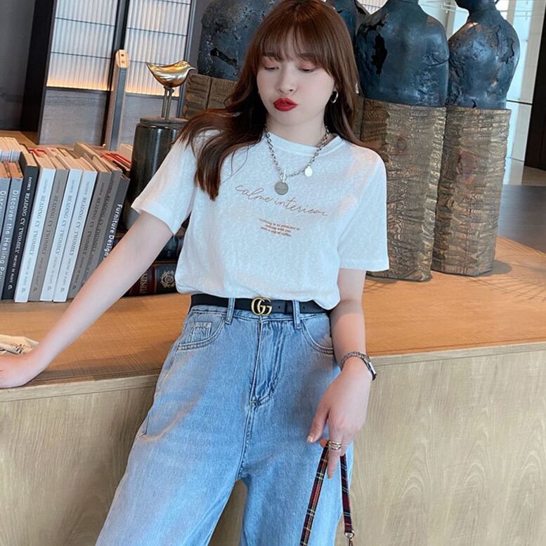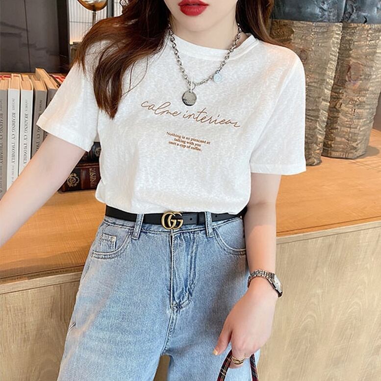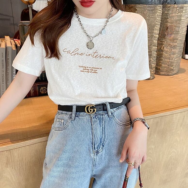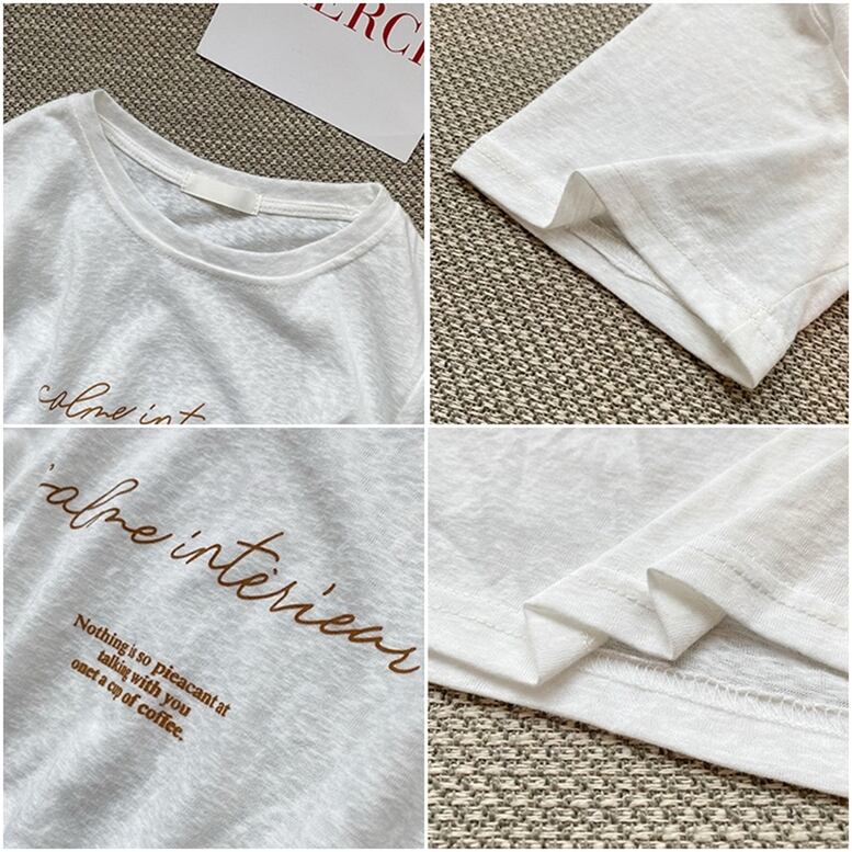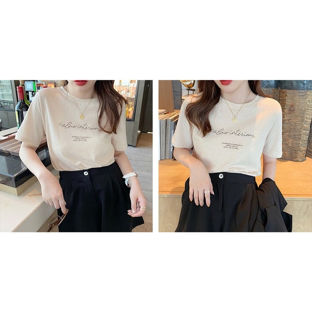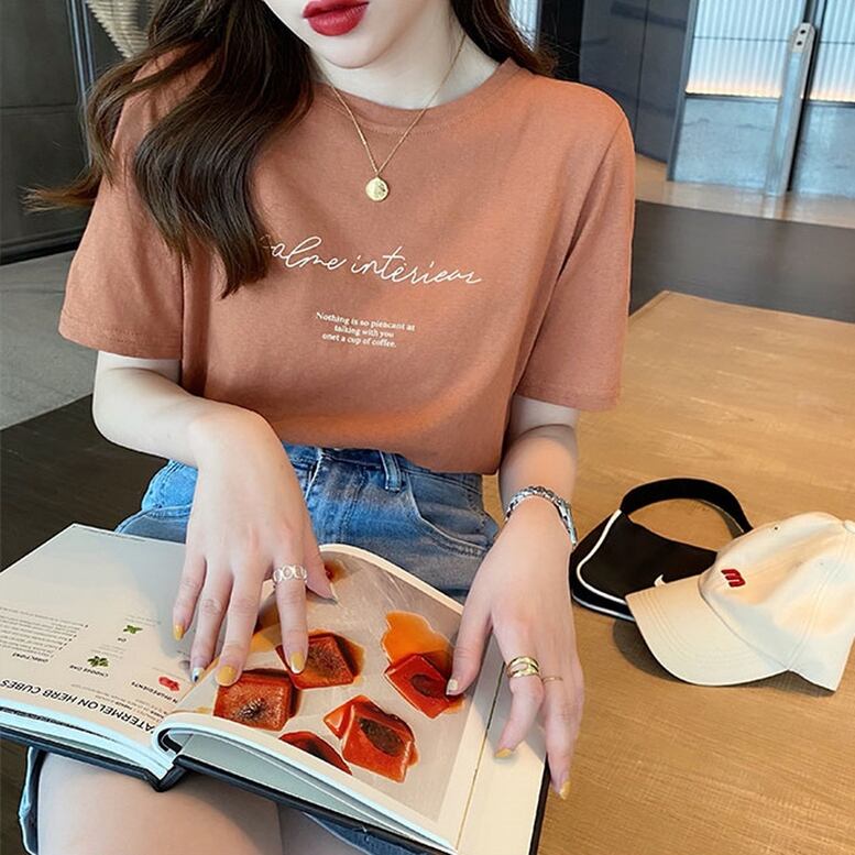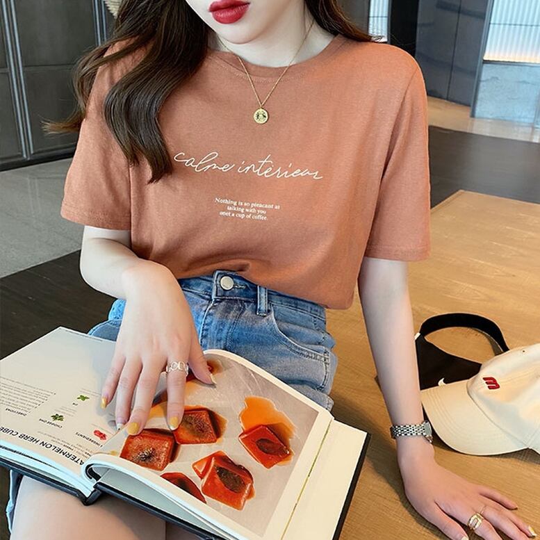 さりげない英字ロゴプリントで大人っぽく着こなすTシャツ