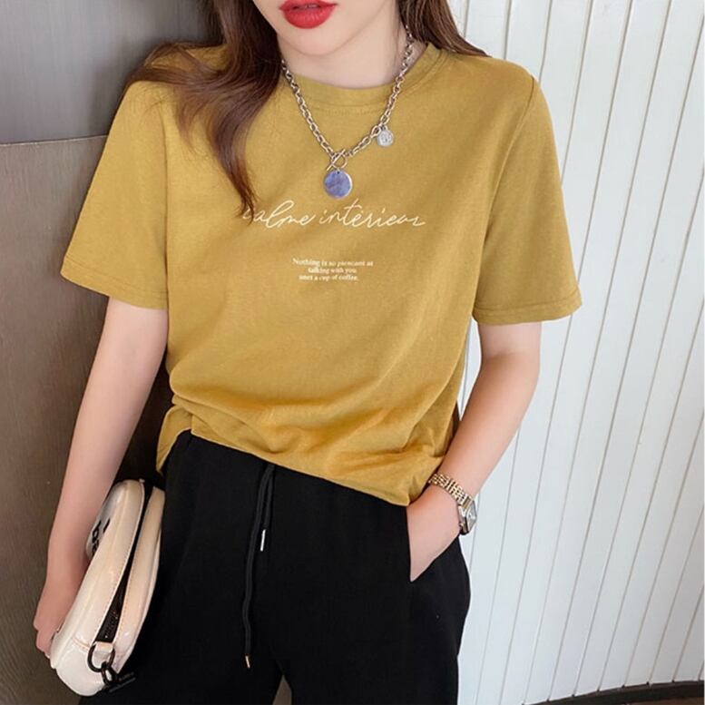 Tシャツ トップス ロゴTシャツ レディース 半袖Tシャツ シャツ 半袖 クルーネック 赤 黄色 緑 オフホワイト テラコッタレッド ライトベージュ クリームイエロー ミントグリーン マスタードイエロー オシャレ シンプル きちんと感 可愛い キレイめ 上品 フェミニン ハンサム マニッシュ カジュアル スポーティ 春 夏 秋 冬 デイリー おでかけ 公園コーデ アウトドア 普段着 定番 ベーシック 万能 機能性 動きやすい ゆったり 体型カバー トレンド シャーベットカラー アースカラー
