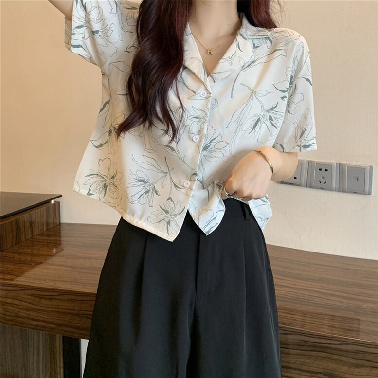 シャツ トップス 花柄オープンカラーシャツ レディース 花柄シャツ 開襟シャツ 半袖 花柄 襟付き 百合柄 シフォンシャツ ブラウス 白 黒 ホワイト ブラック ベージュ オシャレ シアー シンプル きちんと感 可愛い キレイめ 上品 フェミニン トラッド シック 知的 ハンサム マニッシュ カジュアル 春 夏 秋 冬 デイリー おでかけ オンオフ兼用 公園コーデ 普段着 スマート 細見え スタイルアップ 高見え 新鮮 上級者 主役級 動きやすい 軽やか ゆったり 体型カバー モノトーン アースカラー