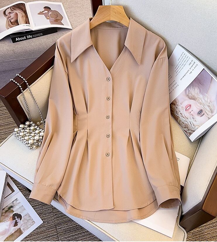 トップス シャツ ブラウス ミディアム丈 袖あり 長袖 襟付き スリム 細身 前開き 華奢見え 薄手 かわいい 大人可愛い きれいめ シンプル カジュアル 大人 上品 お洒落 大人女子 こなれ感 ラフ エレガント 主役級 抜け感 無地 春 秋 冬 20代 30代 40代 ママ 通勤 学生 通学 デート お出かけ 女子会 休日 旅行 着回し 普段使い 重ね着 韓国系 楽ちん モテ 定番 トレンド 流行 インスタ映え M L XL 2XL 3XL 4XL ベージュ ブラック カーキ