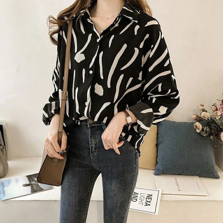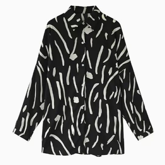 トップス シャツ 袖あり 長袖 Vネック 襟付き ストレート Iライン 前開き 薄手 かわいい 大人可愛い カジュアル 大人 おしゃれ お洒落 かっこいい レトロ 大人可愛い 大人女子 こなれ感 ラフ マニッシュ 個性的 クール モード系 モダン 主役級 存在感 とろみ感 抜け感 柄 春 秋 10代 20代 30代 レディース 女性用 学生 通学 お出かけ 女子会 イベント 旅行 着回し モテ M L XL 2XL 3XL 4XL 白 ホワイト 黒 ブラック