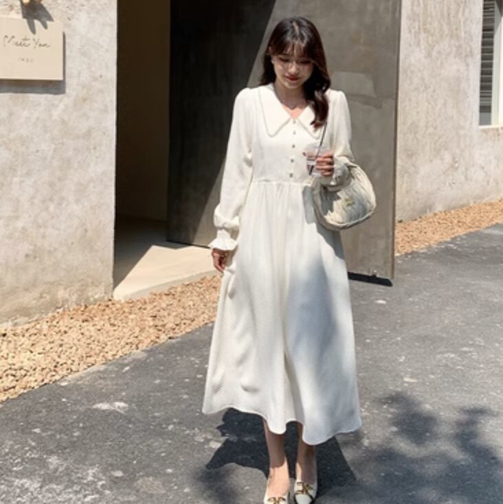 ワンピース デート フレアワンピース ミモレ ミモレ丈 袖あり 長袖 かわいい 大人可愛い きれいめ シンプル カジュアル 大人 上品 おしゃれ お洒落 主役級 存在感 春 秋 10代 20代 30代 レディース 女性用 OL 学生 デート お出かけ 公園デビュー 女子会 休日 イベント 旅行 着回し 普段使い ファッション コーデ 楽ちん モテ トレンド 流行 インスタ映え XL 2XL 3XL 4XL 大きいサイズ 大きい 大きめ ビッグサイズ ゆったり ゆる 白 ホワイト 黒 ブラック