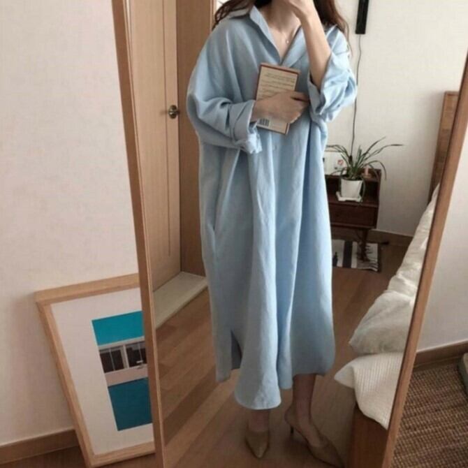 ワンピース シャツ シャツワンピース 膝下 ロング ロング丈 袖あり 長袖 Vネック 襟付き ストレート Iライン スリット サイドスリット 前開き 2way 薄手 かわいい 大人可愛い きれいめ シンプル カジュアル 大人 おしゃれ お洒落 大人可愛い 大人女子 こなれ感 ラフ ラブリー キュート ガーリー 存在感 とろみ感 抜け感 無地 10代 20代 30代 40代 50代 レディース 女性用 ママ 学生 デート お出かけ 女子会 旅行 着回し 重ね着 S M L XL ホワイト ブルー