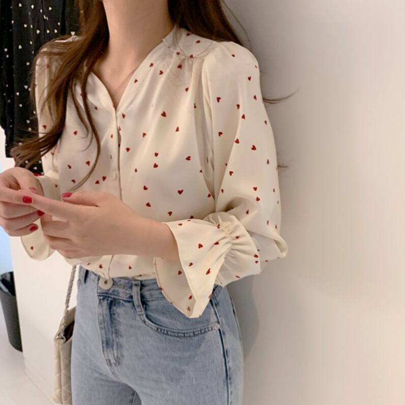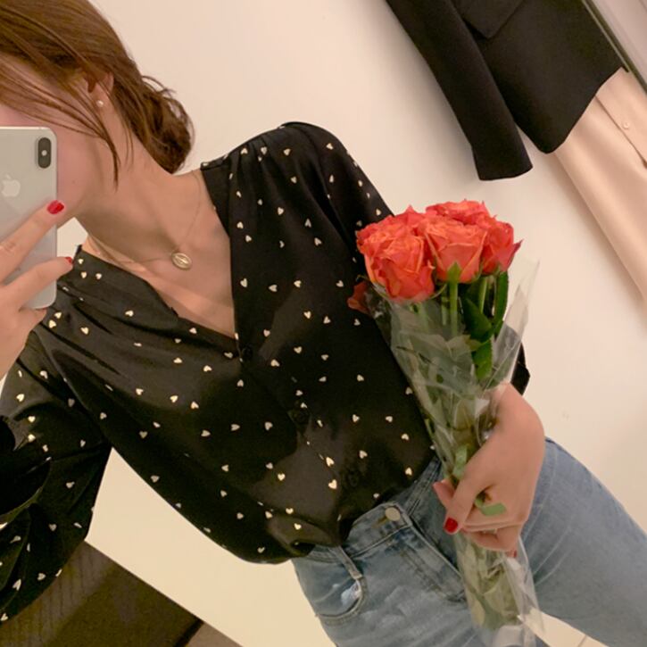 トップス シャツ 袖あり 長袖 ボリューム袖 フレアスリーブ Vネック ストレート Iライン シフォン 前開き 透け感 薄手 かわいい 大人可愛い カジュアル おしゃれ お洒落 レトロ エキゾチック 大人可愛い 大人女子 こなれ感 ラブリー キュート ガーリー 個性的 主役級 存在感 とろみ感 抜け感 ドット柄 春 10代 20代 30代 レディース 女性用 ママ 学生 通学 デート お出かけ 女子会 休日 イベント 旅行 着回し 普段使い モテ S M L XL 黒 ブラック アプリコット