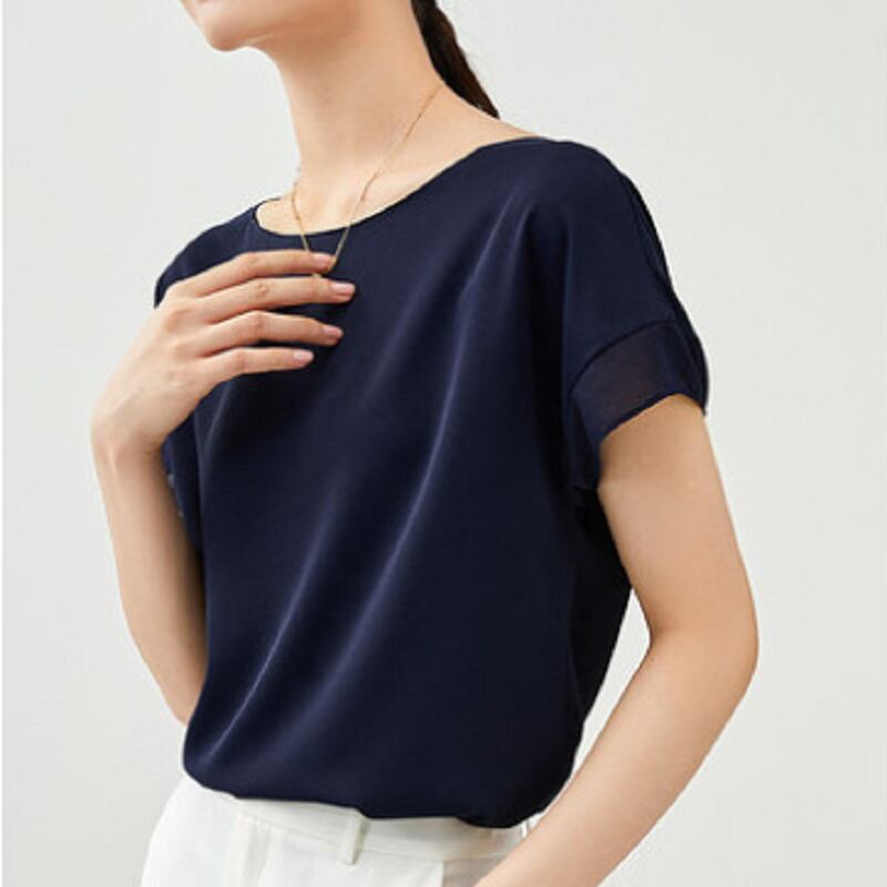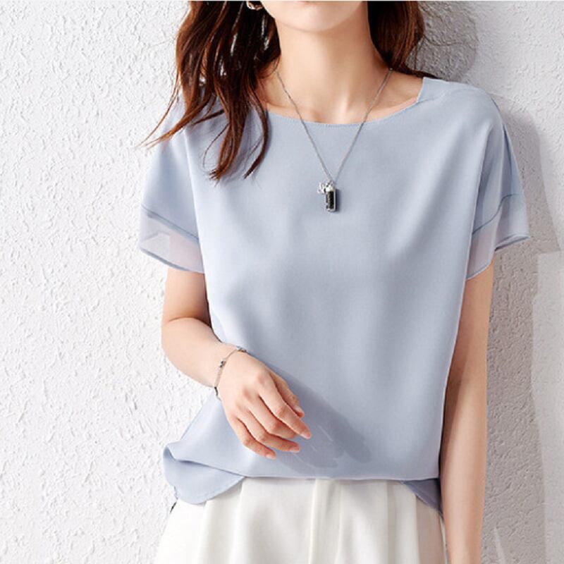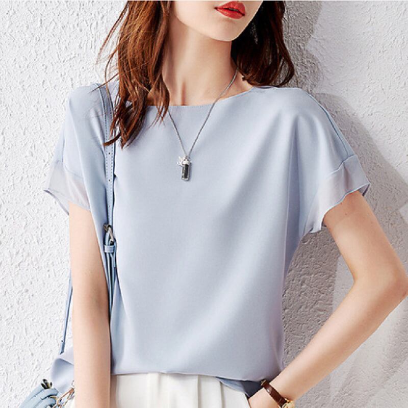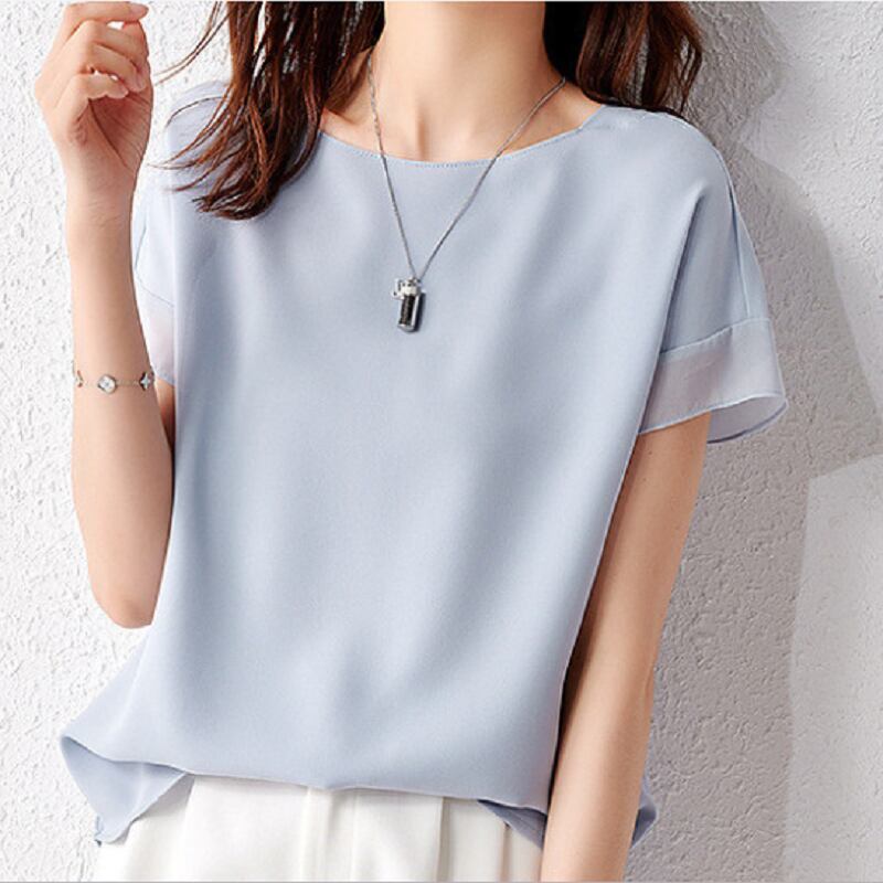 トップス シャツ ミディアム丈 袖あり 半袖 ラウンドネック 襟なし シフォン 薄手 かわいい シンプル カジュアル おしゃれ こなれ感 ラフ ラブリー キュート ルーズ 存在感 無地 夏 10代 20代 30代 レディース 女性用 オフィス ビジネス OL 通勤 学生 通学 デート お出かけ 女子会 お泊まり 休日 パーティー 旅行 着回し 普段使い ファッション コーデ スタイル モテ プレゼント ギフト インスタ映え サイズ S M L XL 2XL 色展開 ブラック ライトブルー