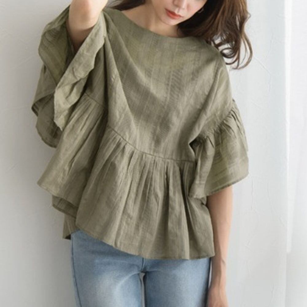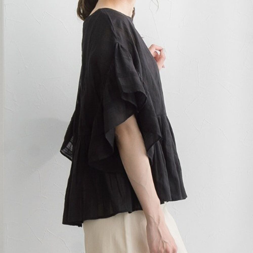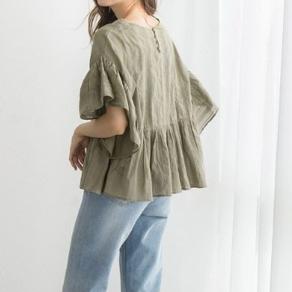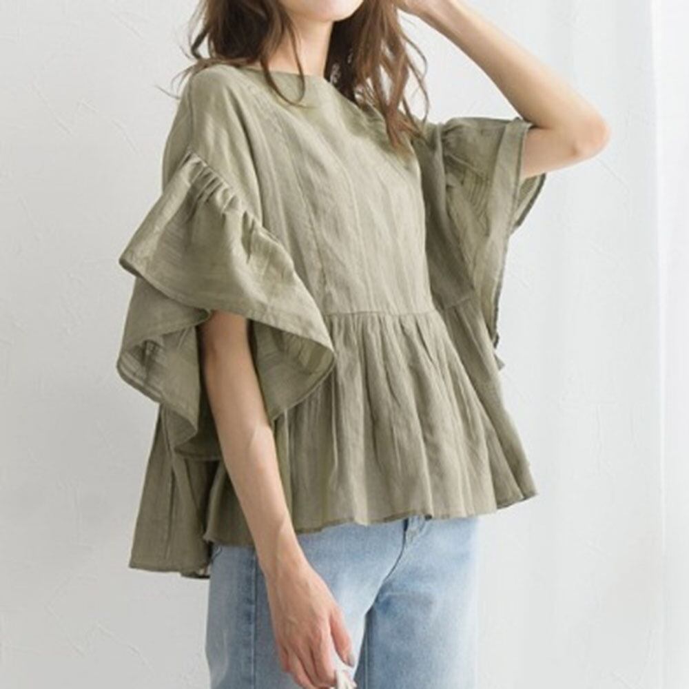トップス シャツ プルオーバー ミディアム丈 袖あり 半袖 ラウンドネック 襟なし Aライン シフォン フリル 大人可愛い きれいめ シンプル カジュアル 大人 上品 おしゃれ こなれ感 ラフ ルーズ 存在感 無地 夏 10代 20代 30代 レディース 女性用 オフィス OL 通勤 学生 通学 デート お出かけ 女子会 お泊まり 休日 パーティー イベント リゾート 旅行 着回し 普段使い ファッション コーデ スタイル 体型カバー プレゼント ギフト ゆったり ワンサイズ 色展開 ブラック グリーン