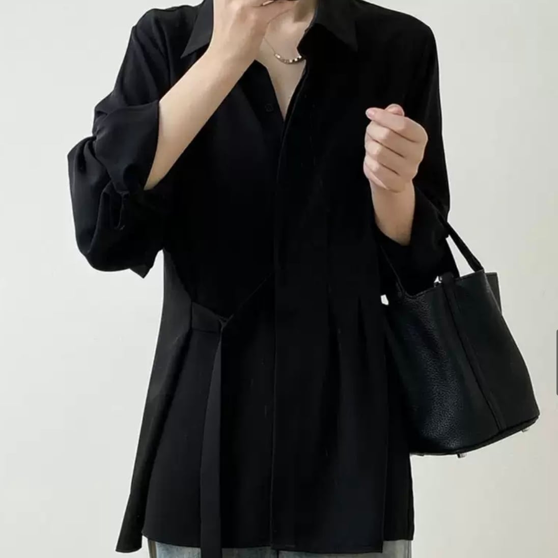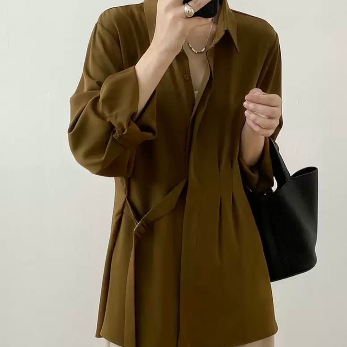 落ち感のあるとろみ生地、上品さと洒落感を兼ね備えた贅沢なブラウス。