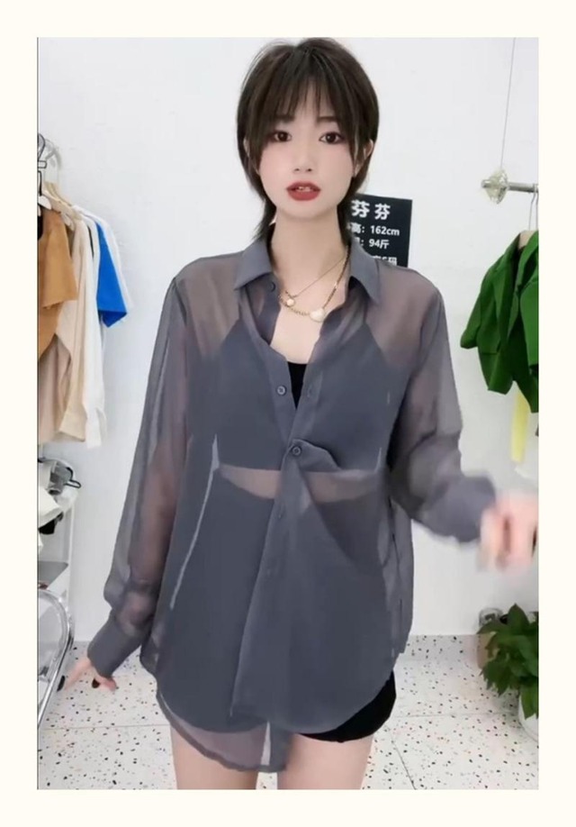 トップス シャツ レギュラー丈 長袖 レギュラー袖 襟付き ポロカラー シフォン 前開き シースルー 薄手 メッシュ シンプル お洒落 大人 ラフ キュート ルーズ クール 抜け感 無地 春 夏 誕生日 10代 20代 30代 女性用 ママ OL 学生 通学 デート お出かけ 公園デビュー 女子会 休日 アウトドア イベント 旅行 海 プール ホテル レストラン ショッピング オールマッチ 韓国系 オルチャン コーデ 楽ちん モテ ギフト トレンド インスタ映え フランス M L XL 黒 白 グレー