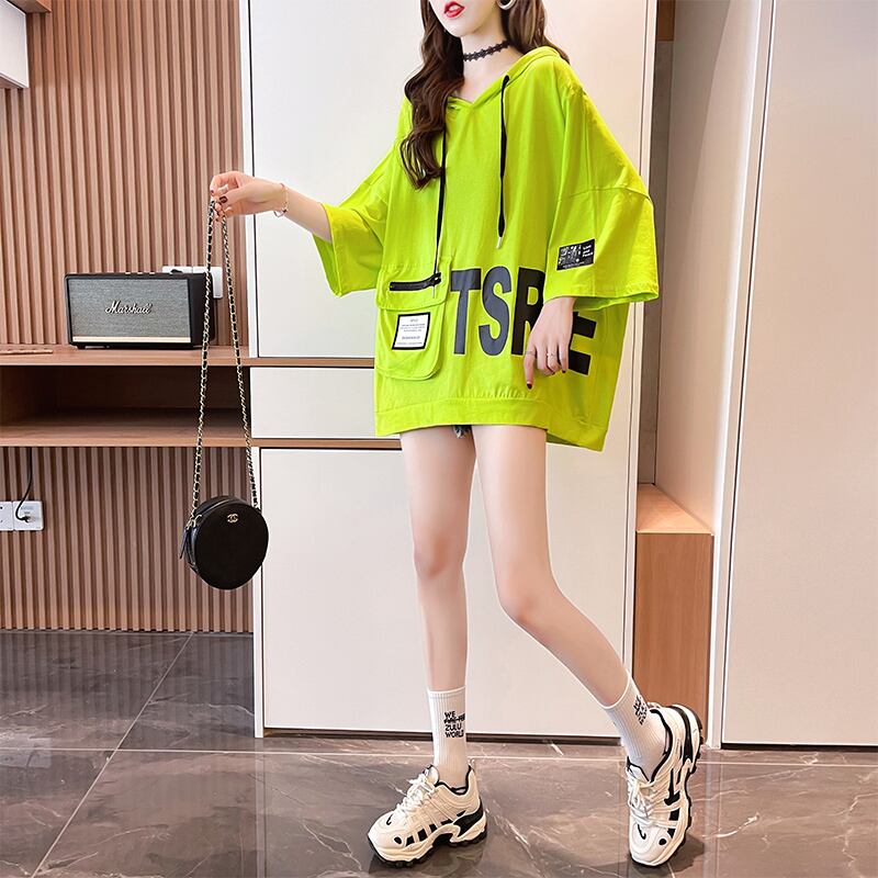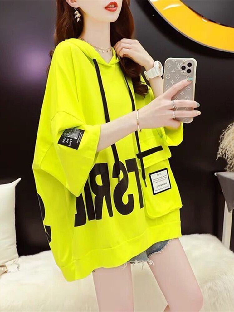 トップス パーカー ミドル丈 半袖 レギュラー袖 バットスリーブ フード付き ポケット ポリエステル カジュアル お洒落 かっこいい ラフ メンズライク ボーイッシュ ルーズ 抜け感 柄 アルファベット 夏 誕生日 10代 20代 30代 女性用 ママ 学生 通学 デート お出かけ 女子会 休日 運動 ヨガ アウトドア イベント 旅行 海 プール ショッピング オールマッチ 普段使い 韓国系 オルチャン 楽ちん モテ ギフト 安い インスタ映え M L XL 2XL ゆったり 黒 白 蛍光グリーン