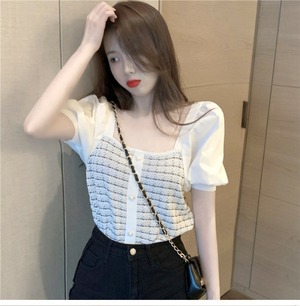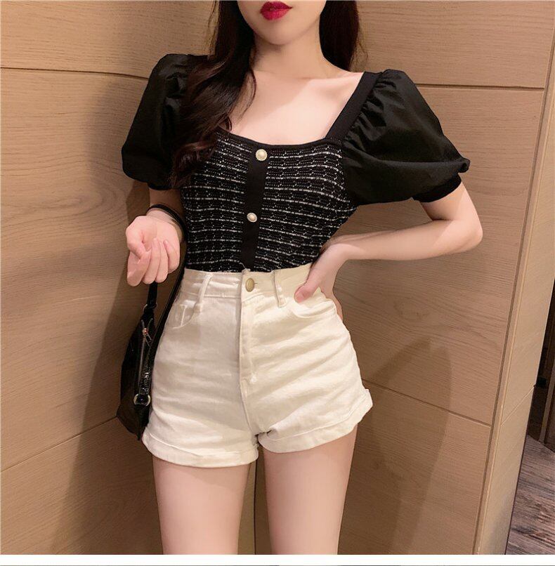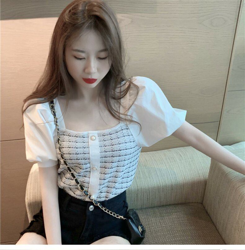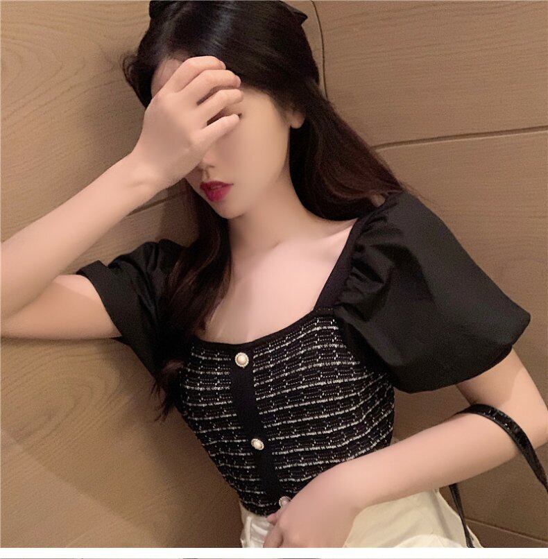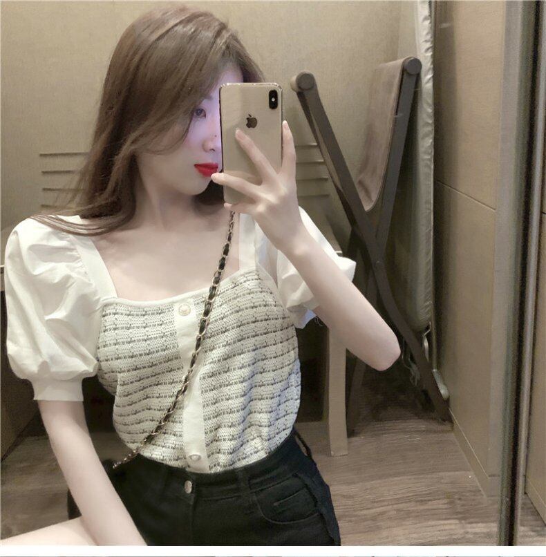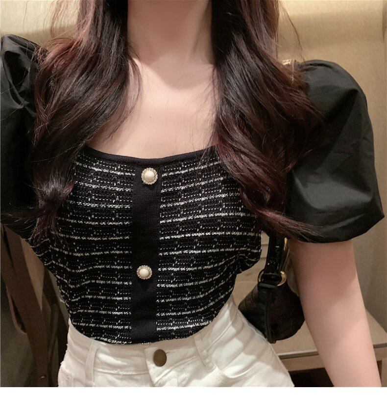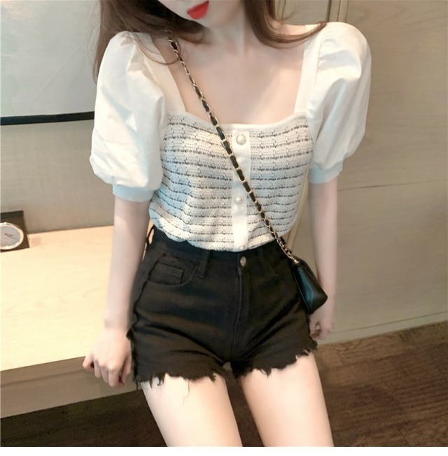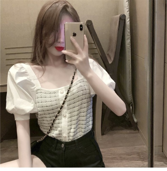 トップス ブラウス 袖あり 半袖 ボリューム袖 パフスリーブ バルーンスリーブ スクエアネック スリム 細身 切り替えデザイン 伸縮性 かわいい 大人可愛い きれいめ 大人 上品 おしゃれ お洒落 大人可愛い 大人女子 こなれ感 セクシー エレガント 主役級 存在感 抜け感 無地 春 夏 10代 20代 30代 レディース 女性用 通勤 学生 通学 デート お出かけ 女子会 休日 パーティー 旅行 ホテル レストラン 着回し 普段使い S M L ホワイト ブラック