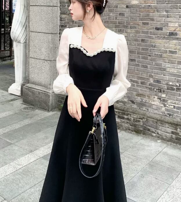 ワンピース デート フレアワンピース ロング 袖あり 長袖 かわいい 大人可愛い きれいめ シンプル カジュアル 大人 上品 おしゃれ お洒落 主役級 存在感 春 秋 10代 20代 30代 レディース 女性用 OL 学生 デート お出かけ 公園デビュー 女子会 休日 イベント 旅行 着回し 普段使い ファッション コーデ 楽ちん モテ トレンド 流行 インスタ映え L XL 2XL 3XL 4XL 大きいサイズ 大きい 大きめ ビッグサイズ ゆったり ゆる 黒 ブラック