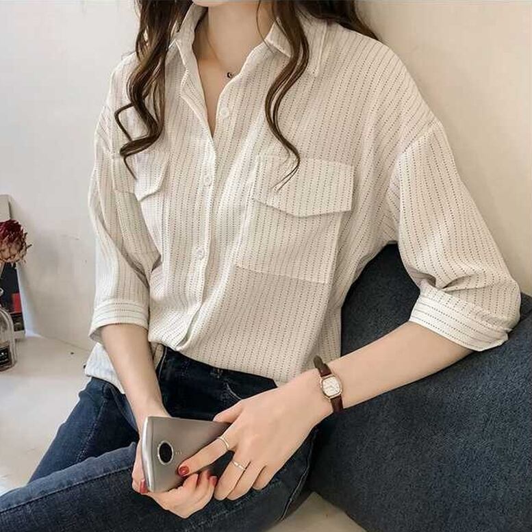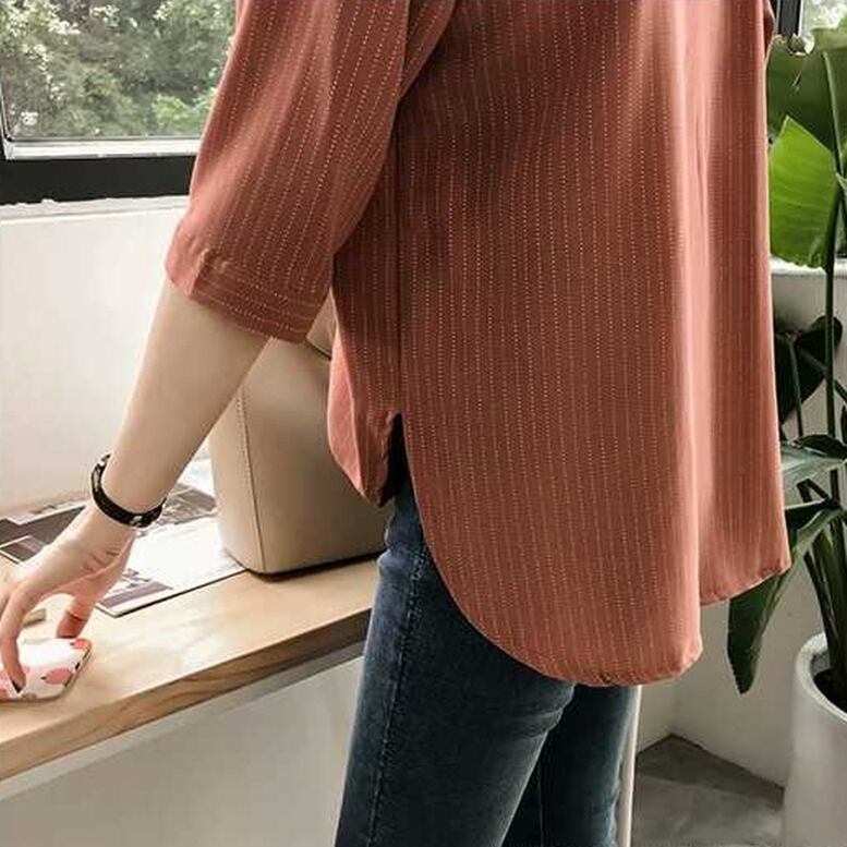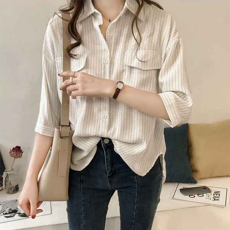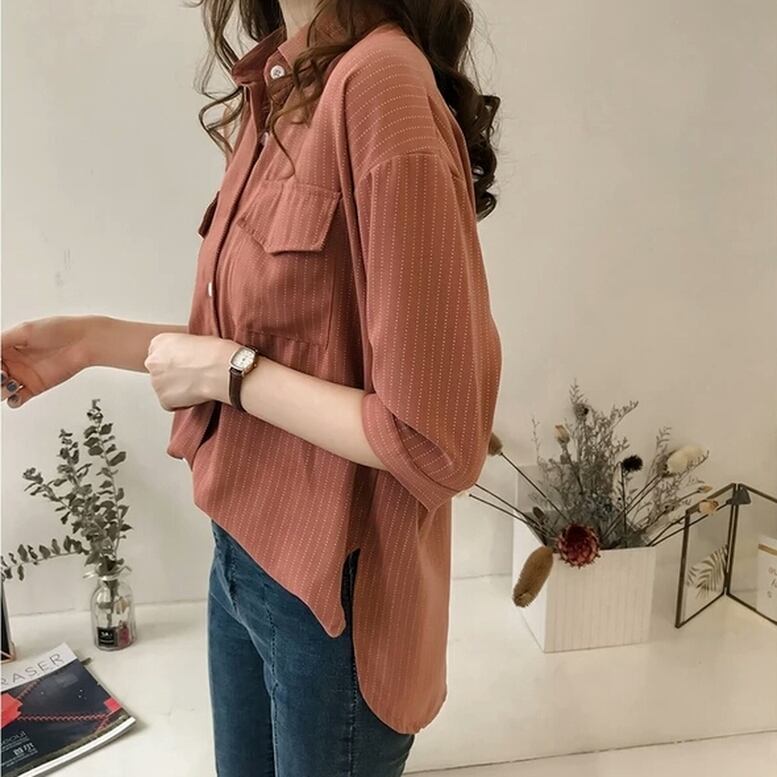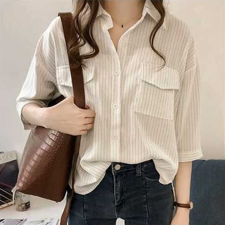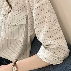 シャツ トップス シアーストライプシャツ レディース ストライプ7分袖シャツ ゆるシャツ ストライプ 7分袖 襟付き シフォンシャツ ドロップショルダー 灰色 茶色 白 グレー ブラウン ホワイト オシャレ シアー シンプル きちんと感 可愛い キレイめ 上品 フェミニン シック ハンサム マニッシュ カジュアル 春 夏 秋 冬 デイリー おでかけ オンオフ兼用 公園コーデ アウトドア 普段着 スタイルアップ 高見え 新鮮 主役級 動きやすい 軽やか ゆったり 体型カバー インスタ映え トレンド