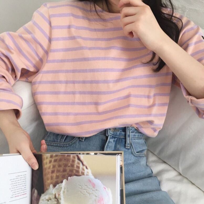 シャーベットカラーのボーダーが大人っぽいTシャツ