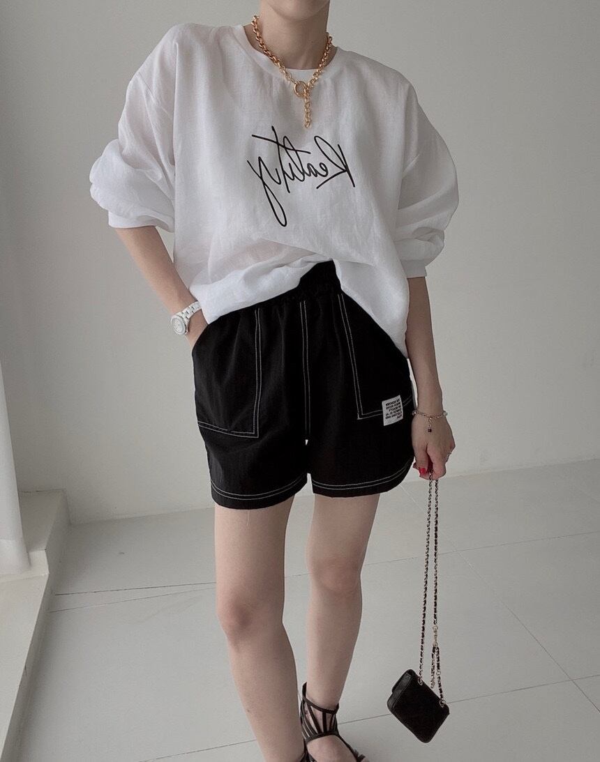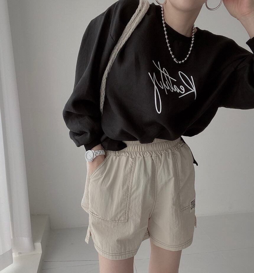 韓国風のシックなラウンドネックTシャツ