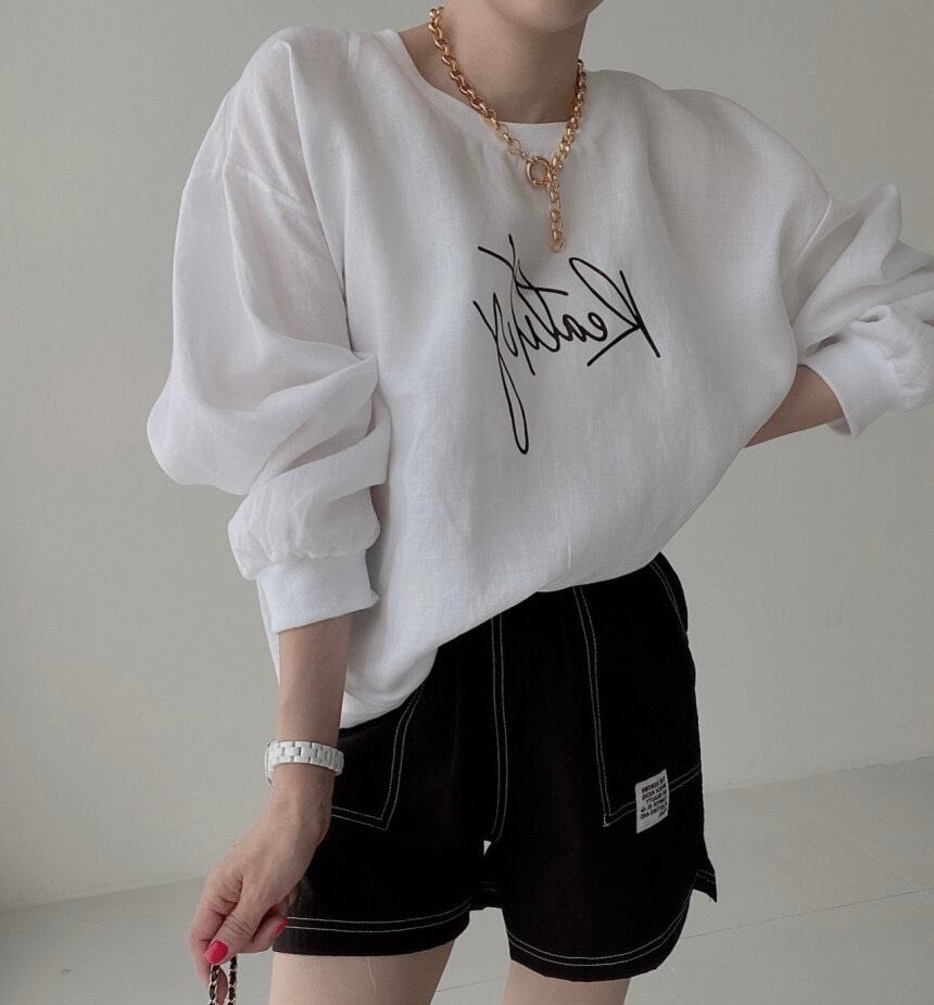 トップス Tシャツ プルオーバー レギュラー丈 長袖 パフスリーブ ラウンドネック 襟なし お洒落 かっこいい ラフ メンズライク ボーイッシュ ルーズ 抜け感 シック 柄 プリント アルファベット 春 秋 誕生日 10代 20代 30代 40代 女性用 ママ OL 学生 通学 デート お出かけ 公園デビュー 女子会 休日 アウトドア イベント 旅行 ショッピング オールマッチ 普段使い 重ね着 韓国系 オルチャン 楽ちん モテ 体系カバー ギフト インスタ映え フリーサイズ 黒 白 アプリコット