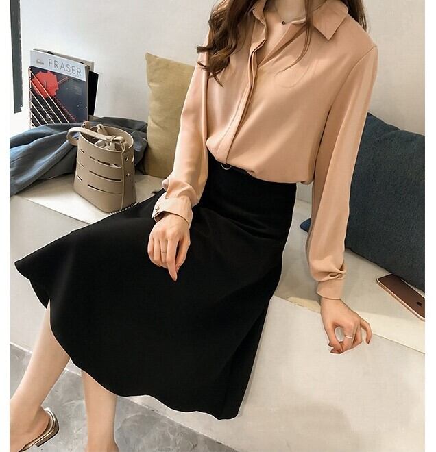 比翼仕立て トップス ブラウス ミディアム丈 長袖 襟付き レギュラーカラー 前開き シンプル きれいめ 上品 おしゃれ 大人っぽい かっこいい クール きちんと感 シック 春 秋 レディース ママ ミセス 女の子 OL オフィス 通勤 学生 通学 デート お出かけ 休日 普段使い お呼ばれ 会食 韓国風 オルチャン ファッション スタイル 体系カバー S M L XL 2XL 3XL 大きいサイズ ぽっちゃり マシュマロ女子 白 ホワイト 黒 ブラック 青 ブルー ベージュ くすみカラー カラバリ