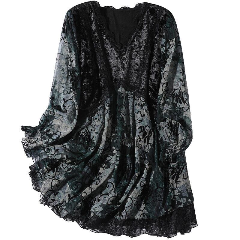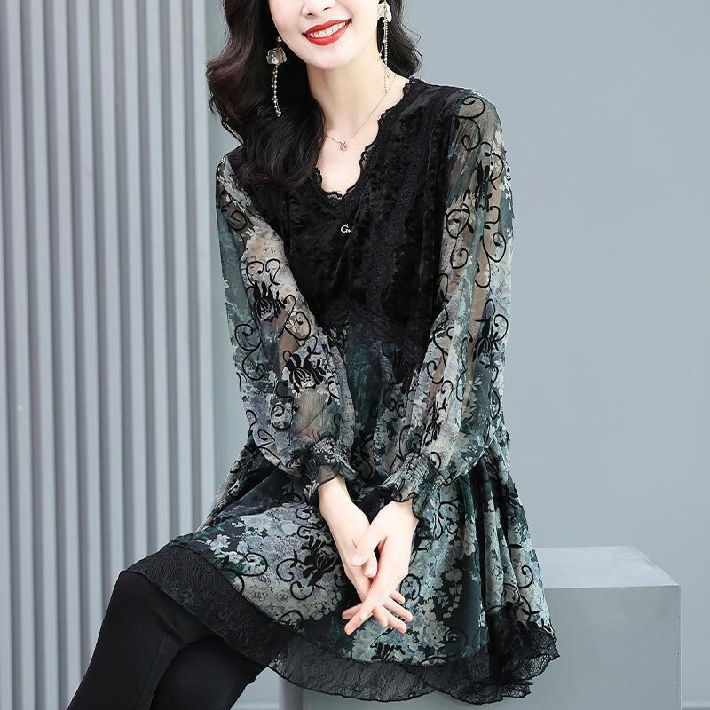 袖シアー ベルベット切替え 胸元アルファベットチャーム付き トップス ブラウス ひざ丈 膝上丈 ミディアム丈 チュニック丈 長袖 キャンディスリーブ ボリューム袖 襟なし Vネック Aラインレース 透け感 切り替えデザイン 異素材MIX かわいい 大人可愛い シンプル きれいめ 上品 おしゃれ エレガント 春 秋 花柄 無地 レディース ママ マタニティ デート お出かけ 女子会 休日 普段使い 体系カバー S M L XL 2XL 3XL 4XL 大きいサイズ ゆったり ぽっちゃり ブラックブルー