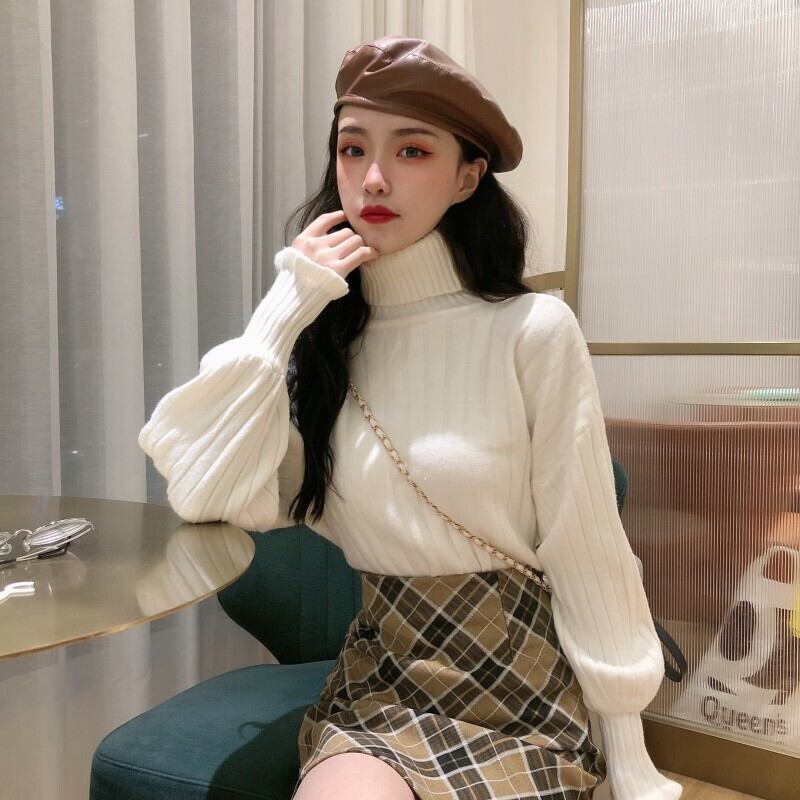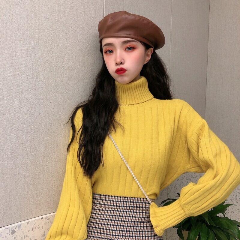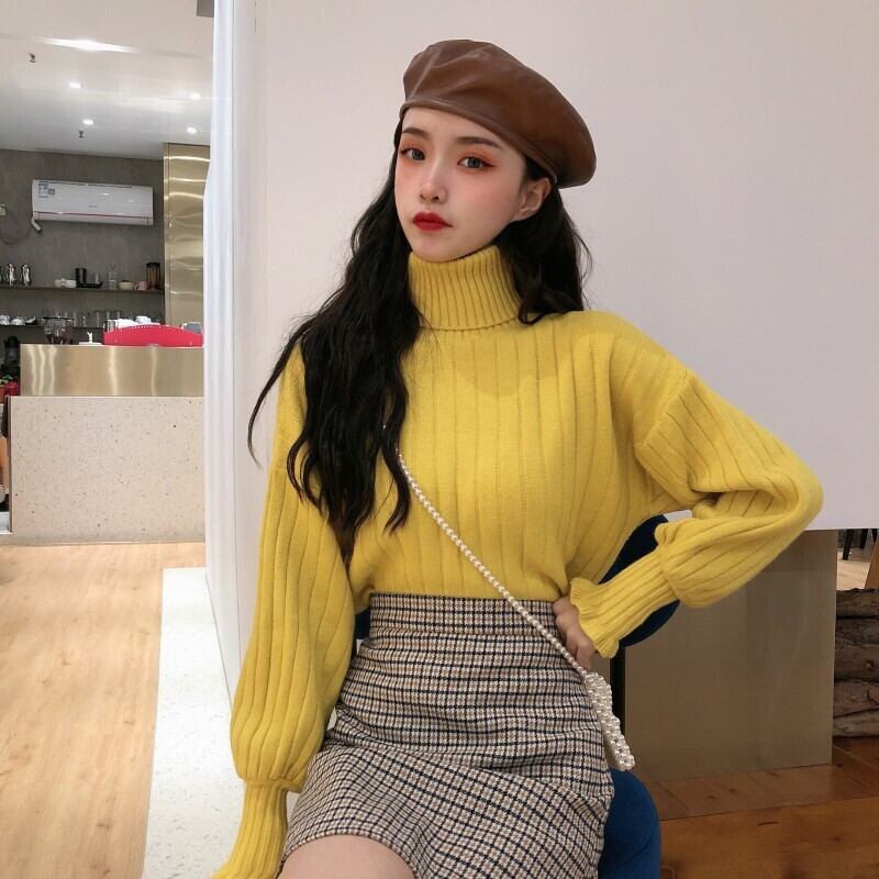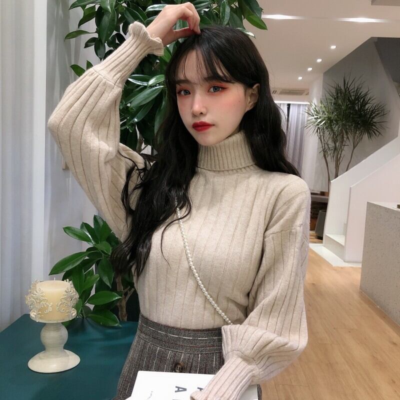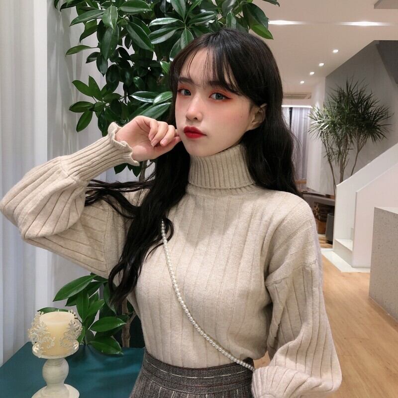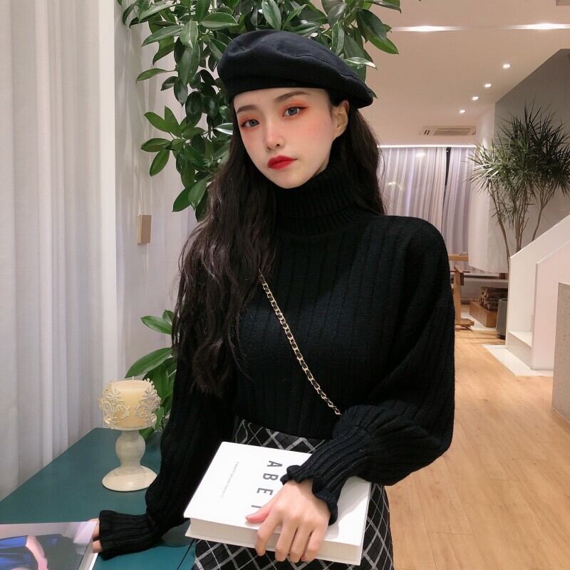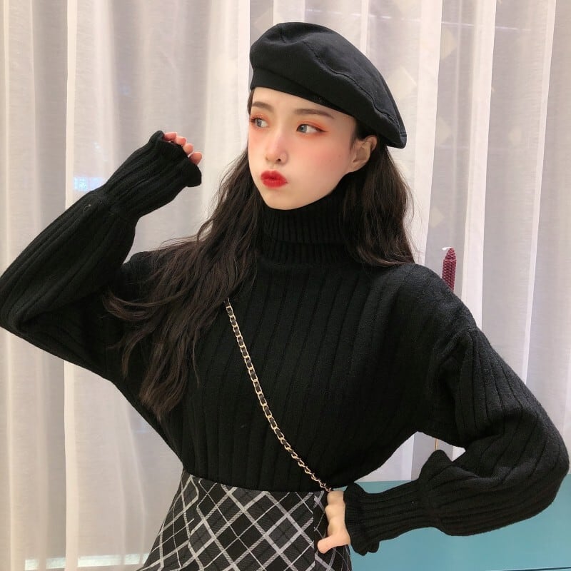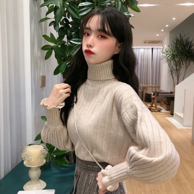 様々なスタイルに合わせやすい色合いのタートルネックセーターです