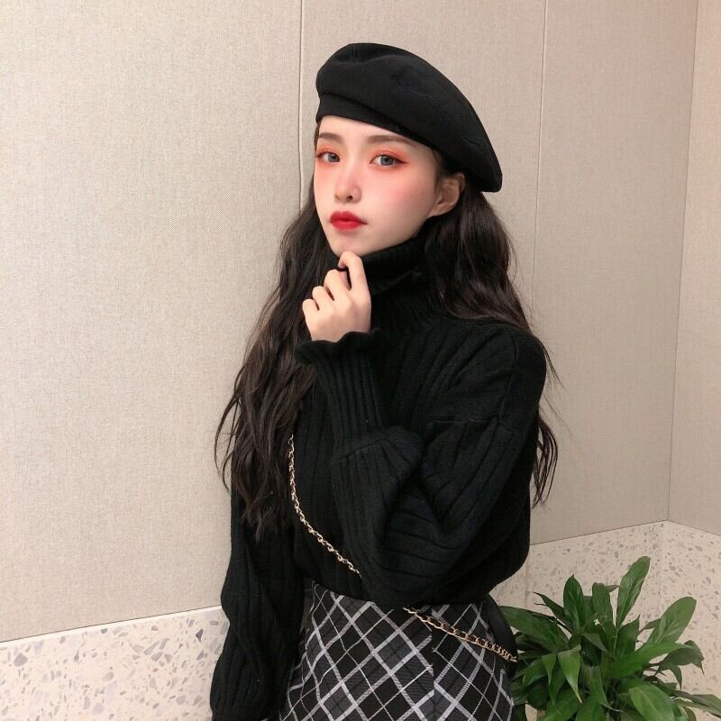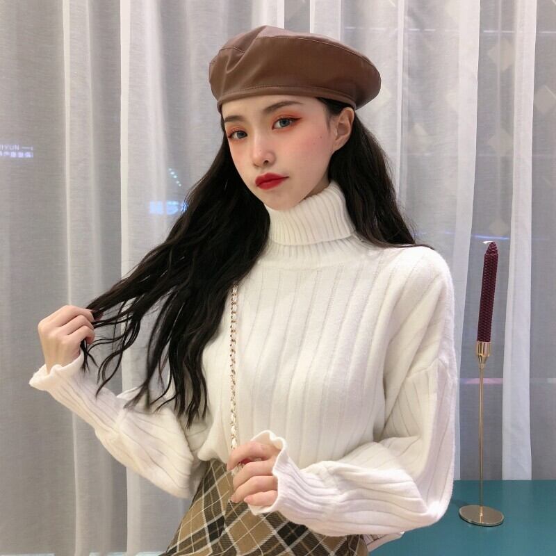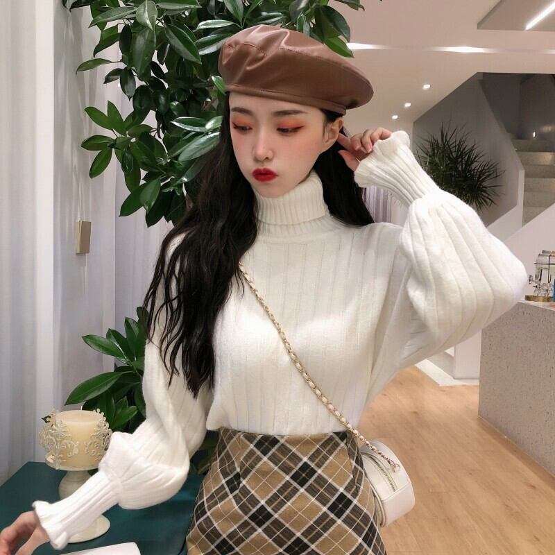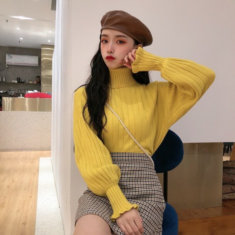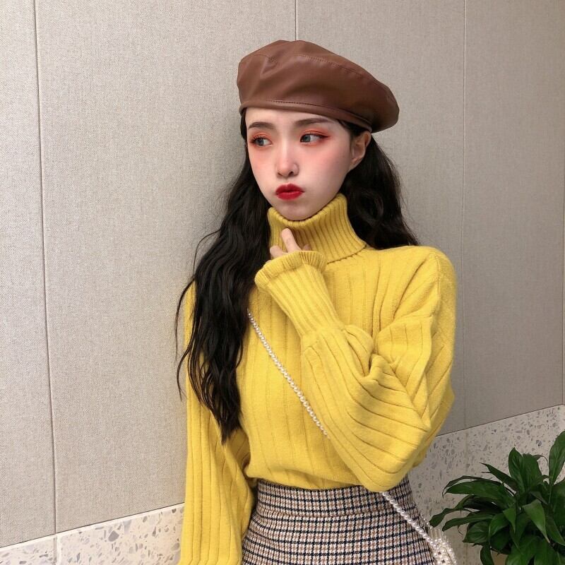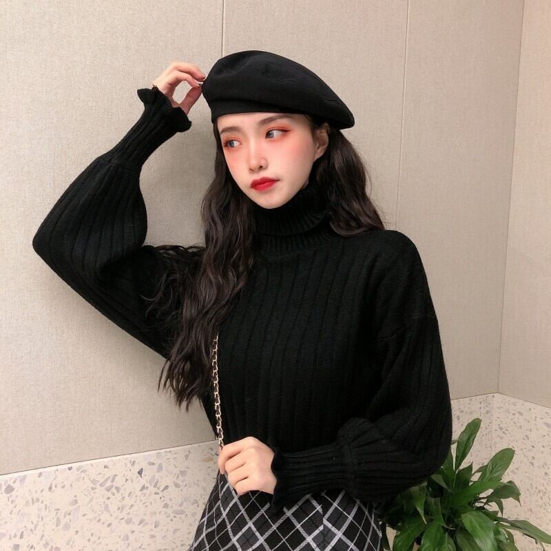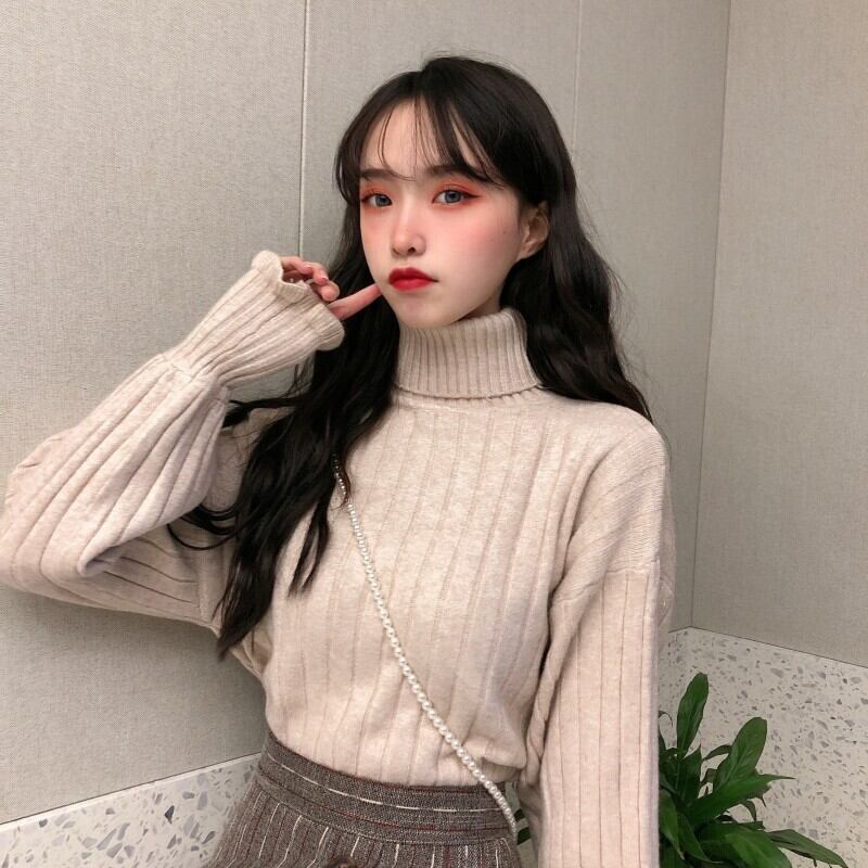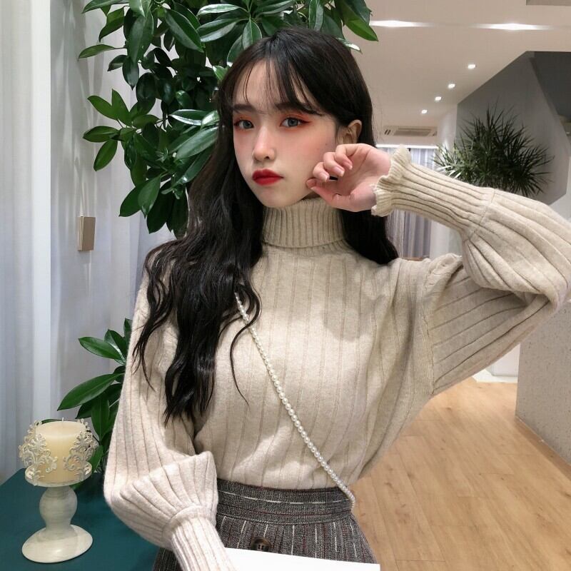 様々なスタイルに合わせやすい色合いのタートルネックセーターです
