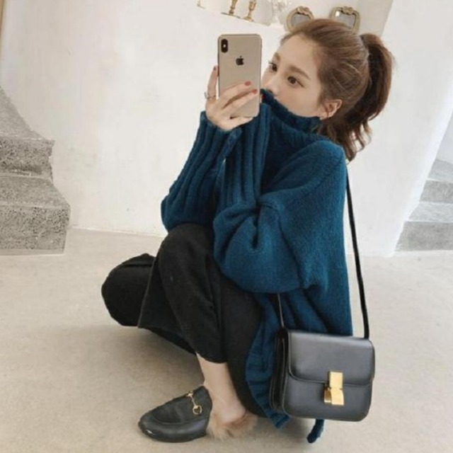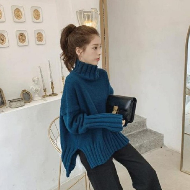 サイドにスリットが入っておりゆったり感のあるハイネックセーターです