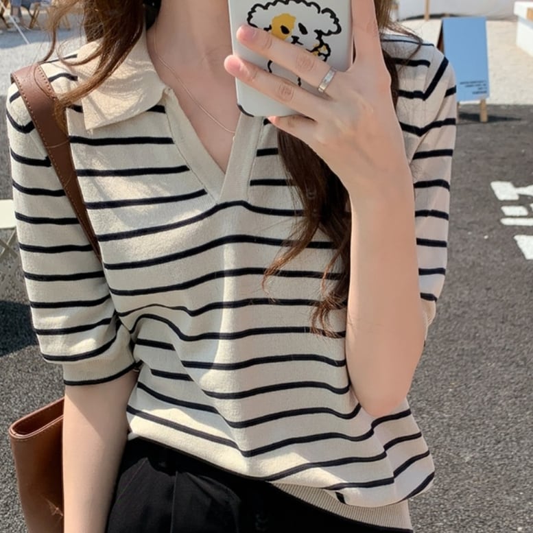 ポロシャツ トップス ボーダーポロTシャツ レディース シャツ ボーダー柄 半袖 襟付き スキッパーポロシャツ バイカラー 黒 ブラック ベージュ オシャレ シンプル きちんと感 可愛い キレイめ 上品 フェミニン ハンサム マニッシュ カジュアル 春 夏 秋 冬 デイリー おでかけ オンオフ兼用 公園コーデ アウトドア 普段着 定番 ベーシック 王道 コンパクト スマート 細見え スタイルアップ 新鮮 鮮度アップ 動きやすい 軽やか ゆったり 体型カバー インスタ映え トレンド アースカラー