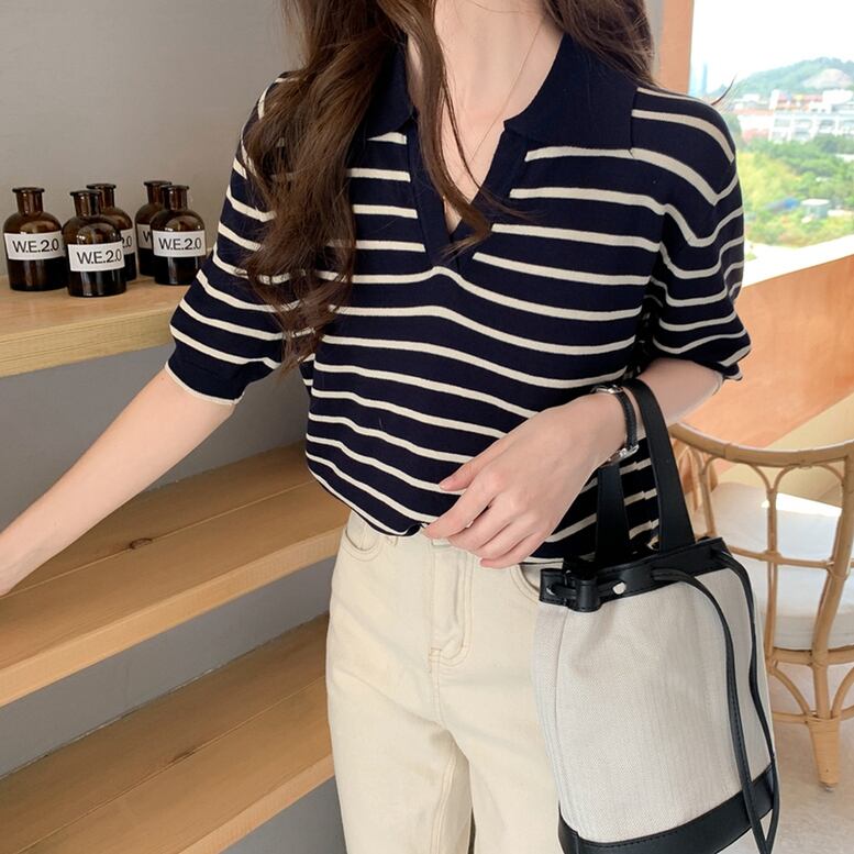 シンプルに可愛く決まるボーダーの定番ポロシャツ